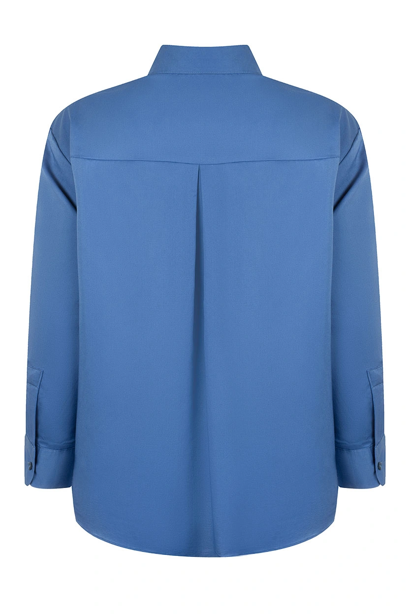 مدل یقه برگردان با چهار دکمه جلو بسته، ترکیبی از استایل کلاسیک و مدرن را ارائه میدهد. این طراحی نهتنها ظاهری رسمیتر به شومیز میبخشد، بلکه امکان تنوع در استایل را نیز فراهم میکند. میتوانید دکمههای بالایی را باز بگذارید تا استایل راحتتری داشته باشید یا آنها را ببندید تا ظاهری رسمیتر پیدا کنید.