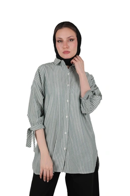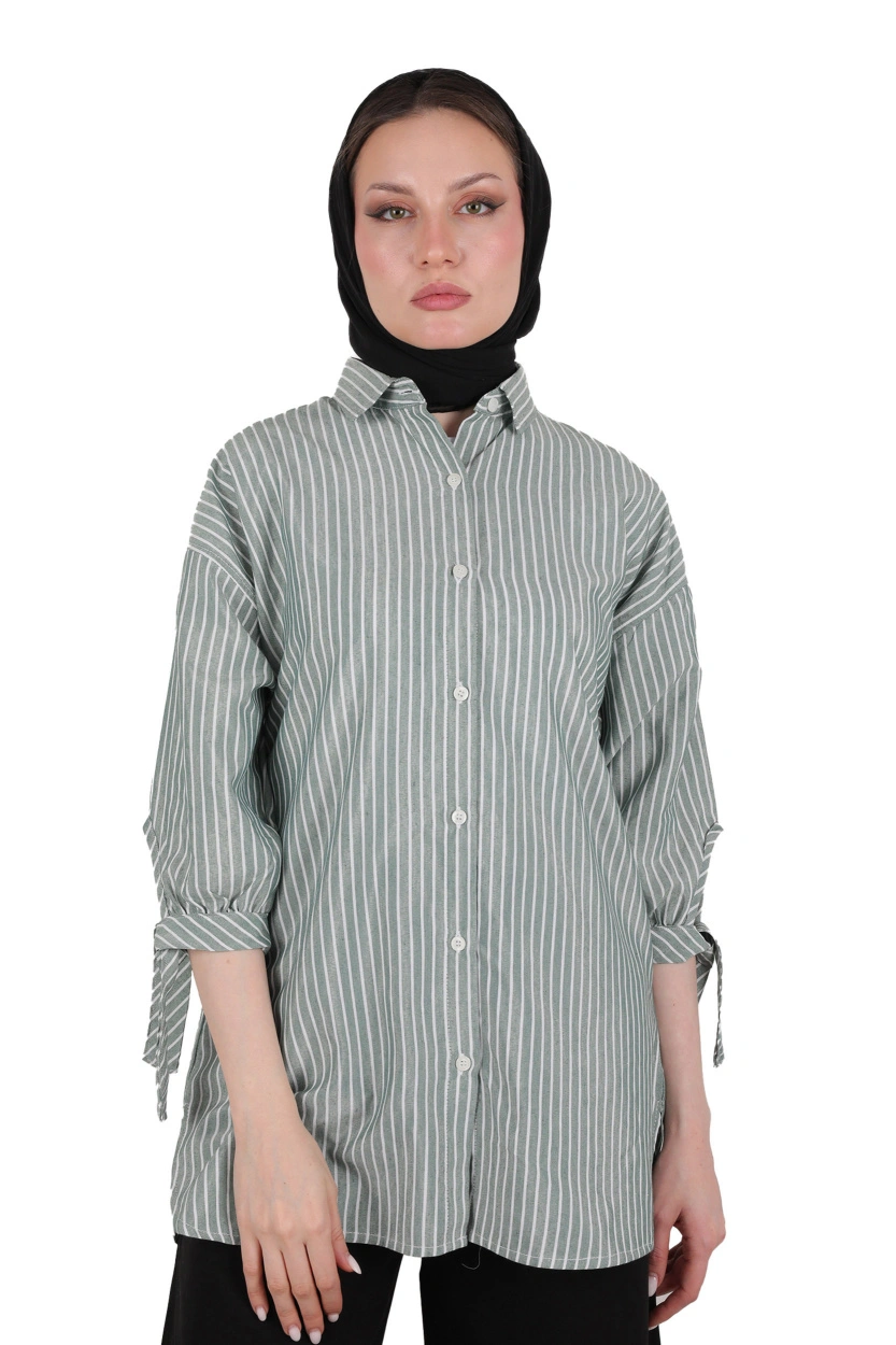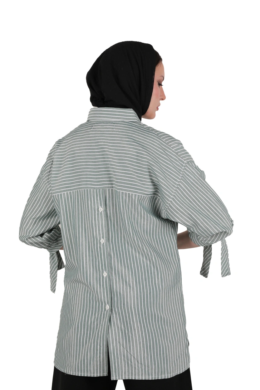 طرح راهراه کلاسیک و در عین حال مدرن این مانتو، با بندهای آستین سهربع ترکیب شده تا ظاهری جذاب و امروزی برایتان بسازد. یقه برگردان و دکمهدار بودن جلو و پشت مانتو نیز آن را از نظر طراحی خاصتر کرده است.