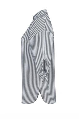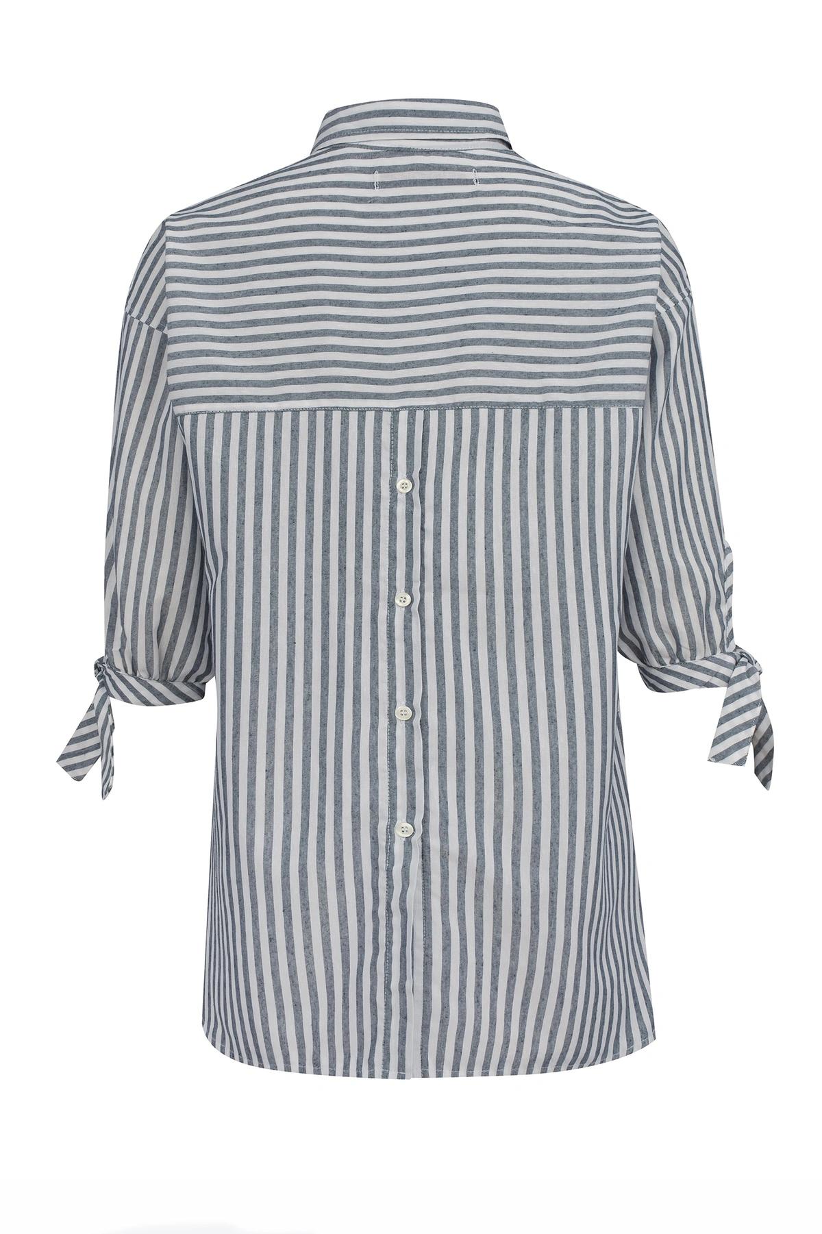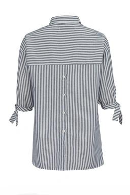 طرح راهراه کلاسیک و در عین حال مدرن این مانتو، با بندهای آستین سهربع ترکیب شده تا ظاهری جذاب و امروزی برایتان بسازد. یقه برگردان و دکمهدار بودن جلو و پشت مانتو نیز آن را از نظر طراحی خاصتر کرده است.