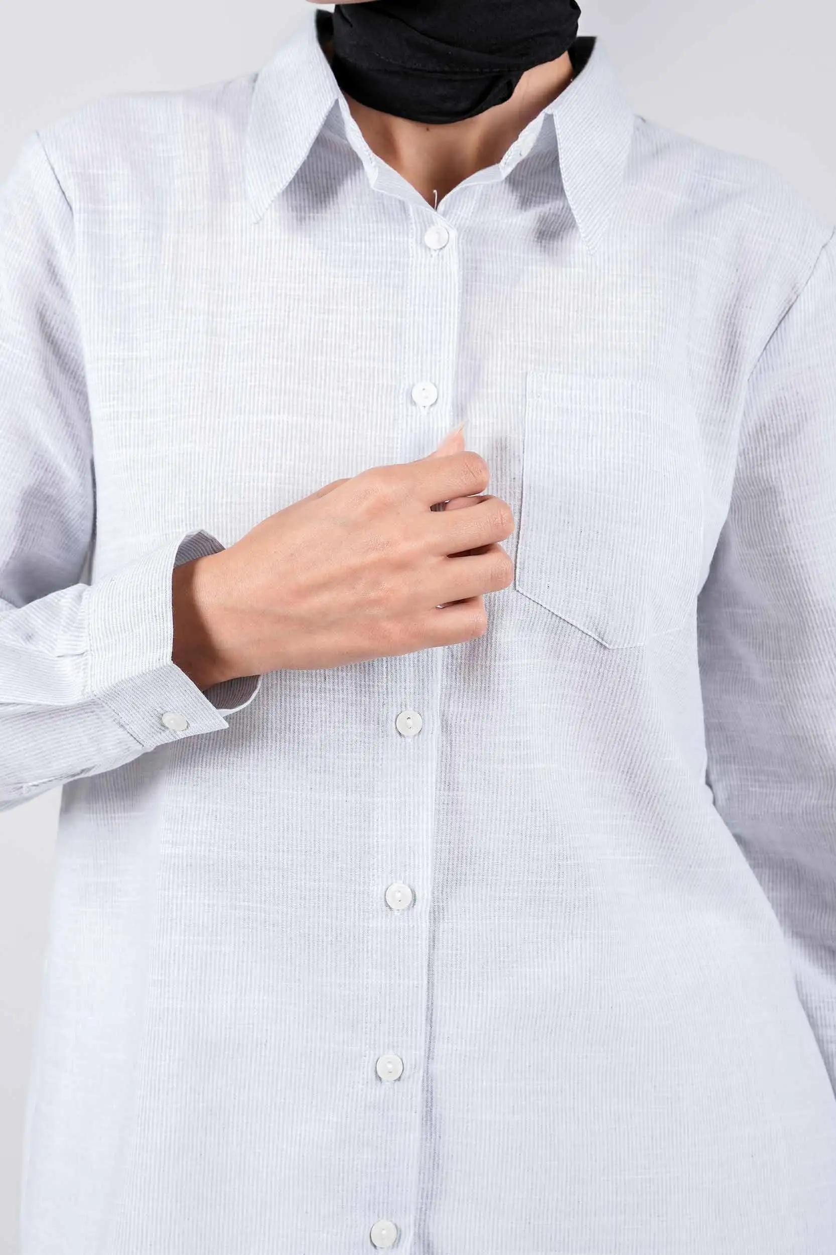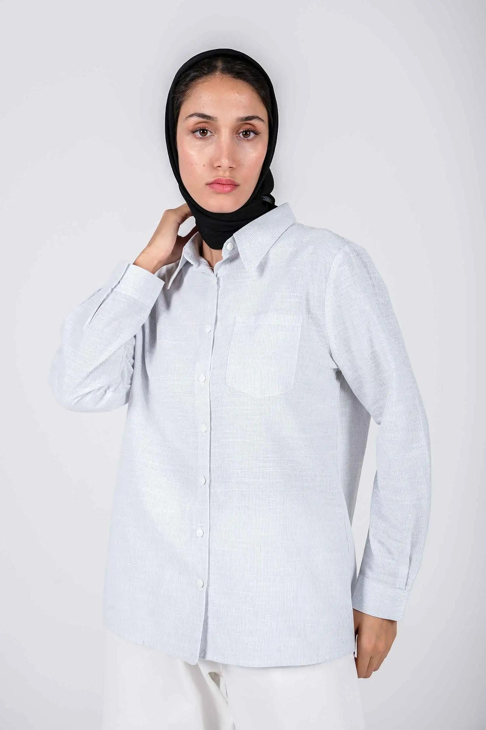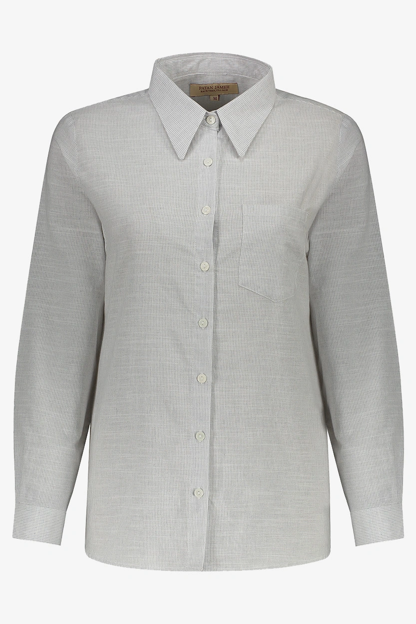 طراحی این شومیز با آستین بلند و سرآستین دکمهدار، علاوه بر راحتی، امکان تنظیم استایل آستینها را نیز فراهم میآورد. یقه برگردان و قواره معمولی، فرم شومیز را متناسب با انواع اندامها حفظ کرده و قد تا روی باسن، آن را برای استفاده روزمره یا موقعیتهای نیمهرسمی ایدهآل میکند.