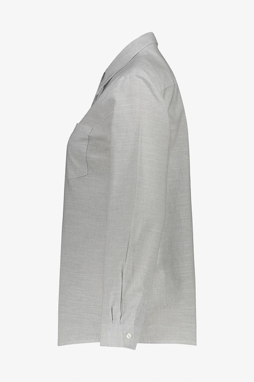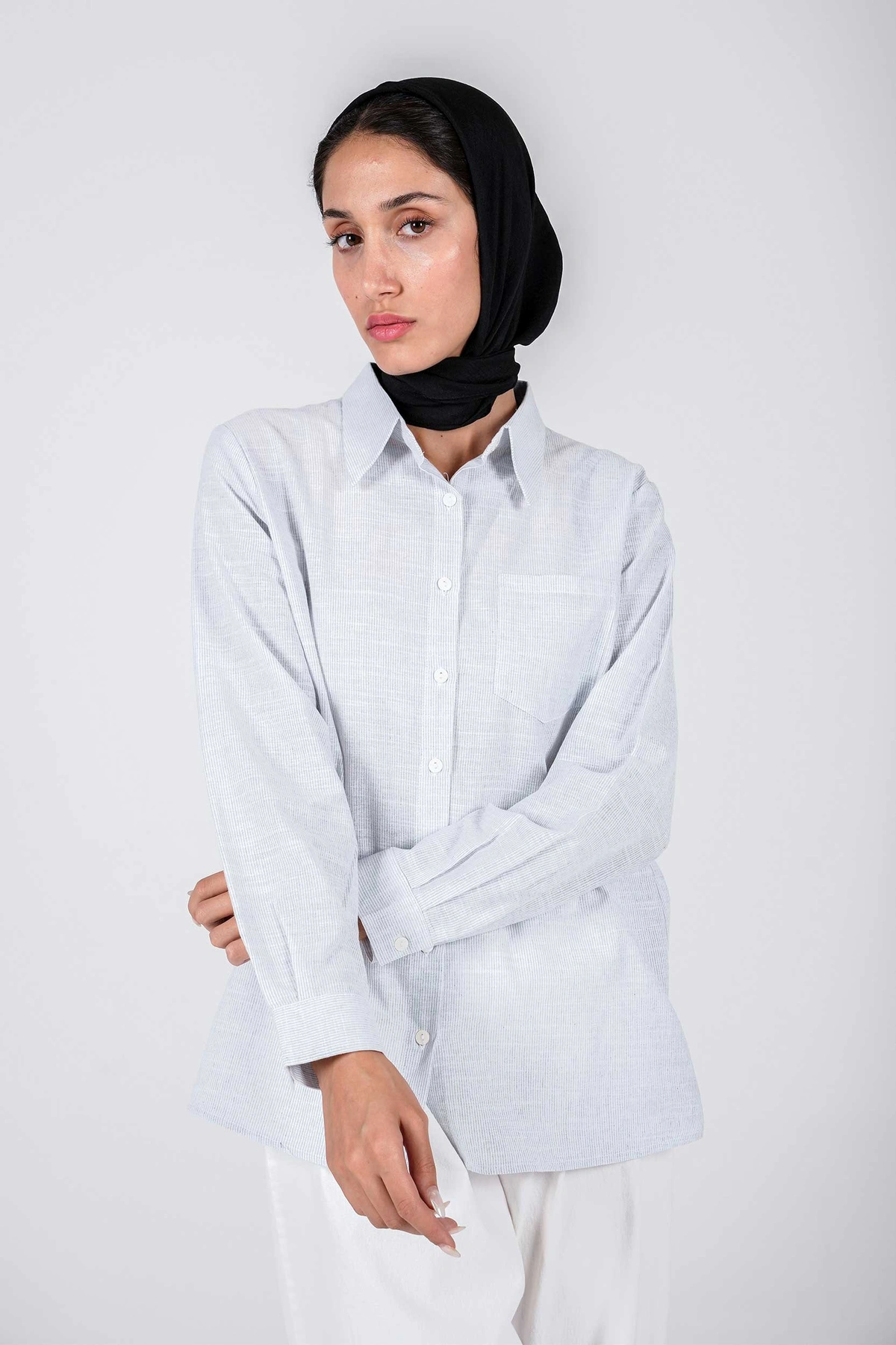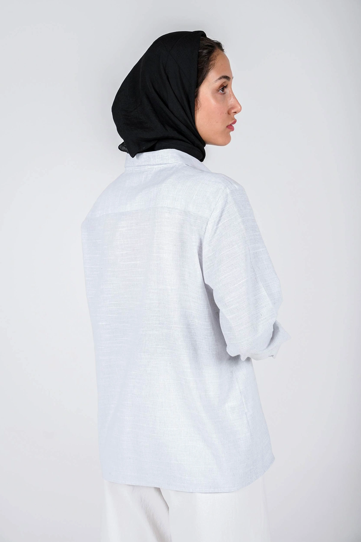 طراحی این شومیز با آستین بلند و سرآستین دکمهدار، علاوه بر راحتی، امکان تنظیم استایل آستینها را نیز فراهم میآورد. یقه برگردان و قواره معمولی، فرم شومیز را متناسب با انواع اندامها حفظ کرده و قد تا روی باسن، آن را برای استفاده روزمره یا موقعیتهای نیمهرسمی ایدهآل میکند.