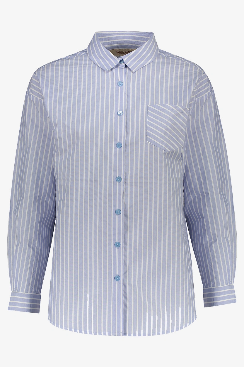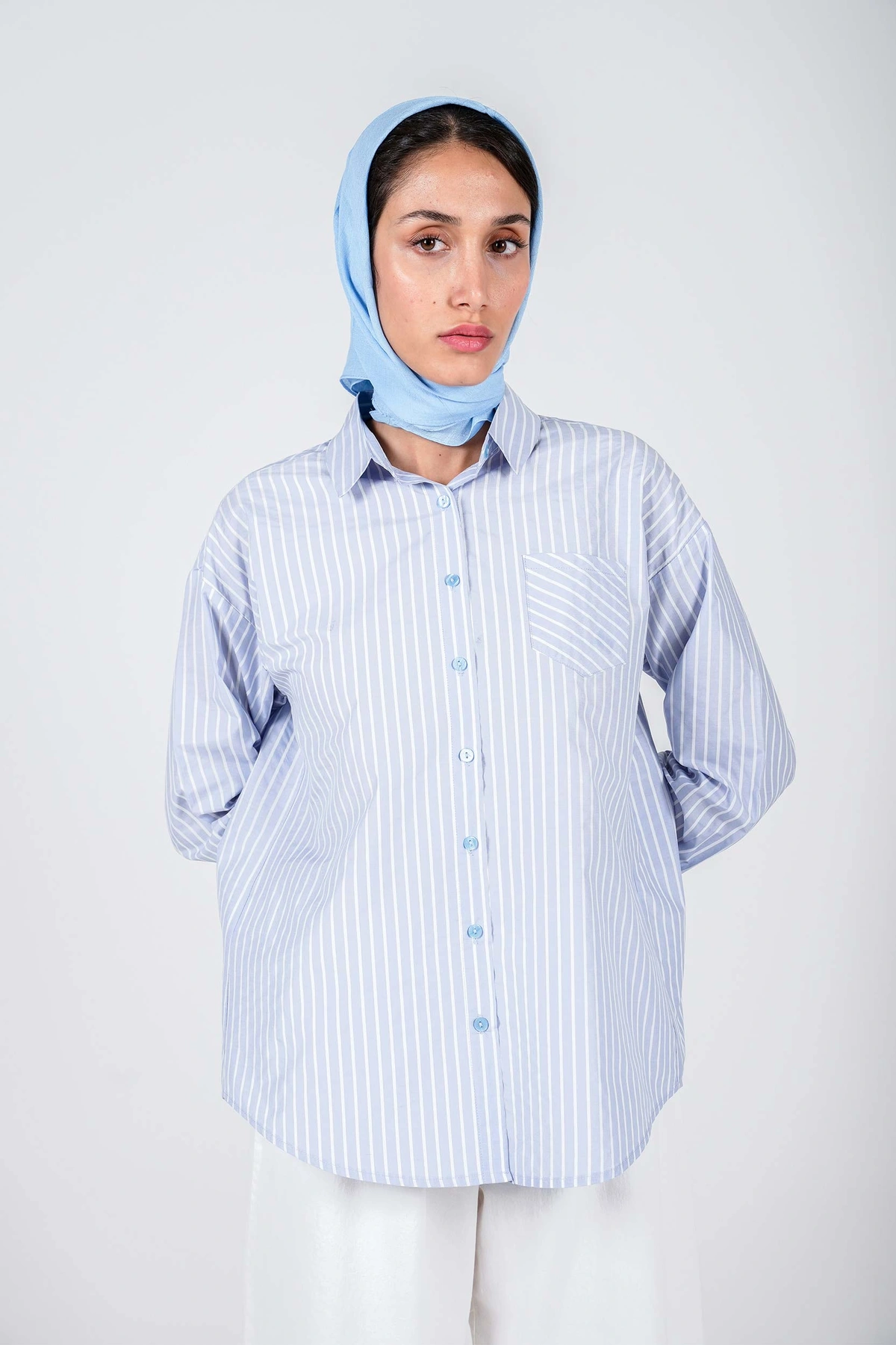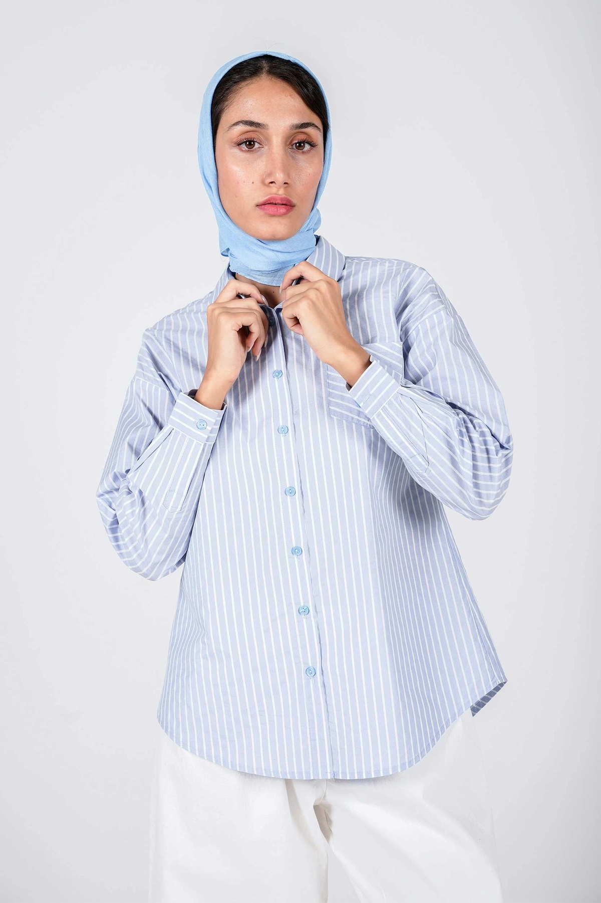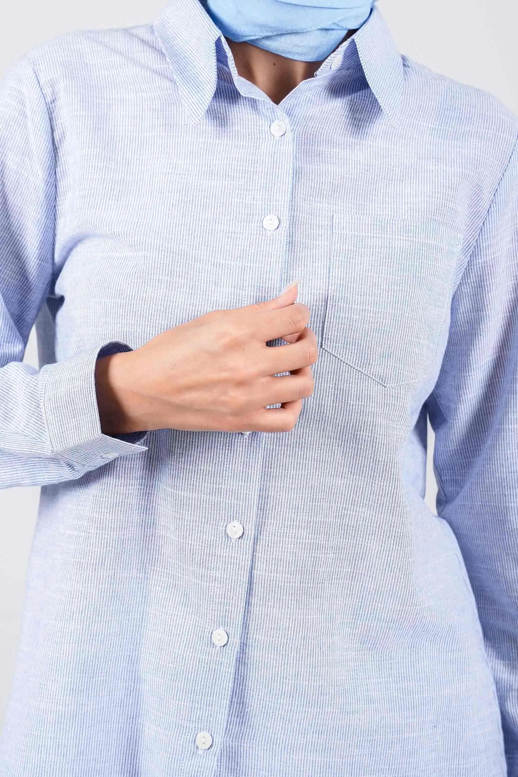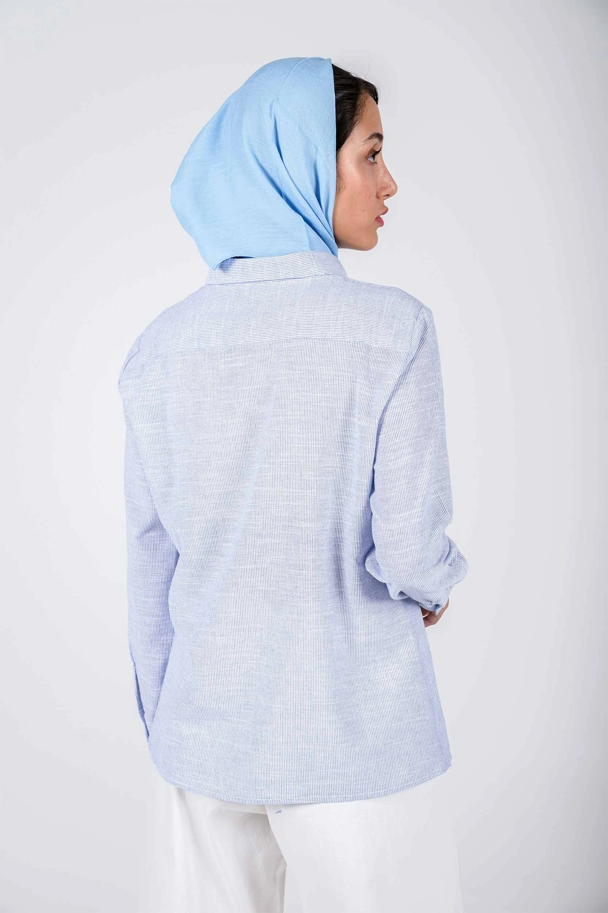 این شومیز دارای آستین بلند با سرآستین دکمهدار است که به شما امکان تنظیم راحتی آستینها را میدهد. قواره معمولی و قد تا روی یا زیر باسن باعث میشود که این مدل هم با شلوار و هم با دامن به زیبایی ست شود. طرح راهراه آن در رنگهای متنوع شامل آبی روشن، طوسی، طوسی سیر، آبی تیره و کرم ارائه میشود که برای سلیقههای مختلف مناسب است.