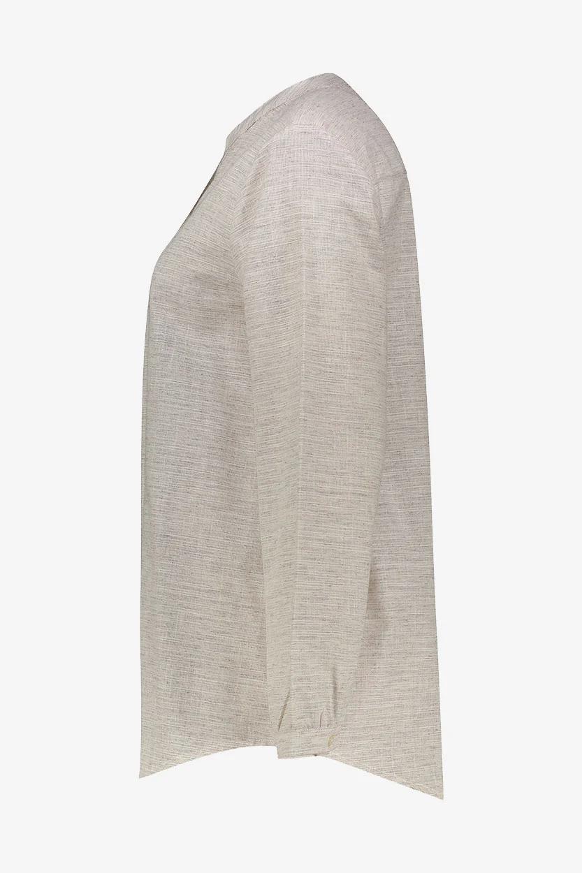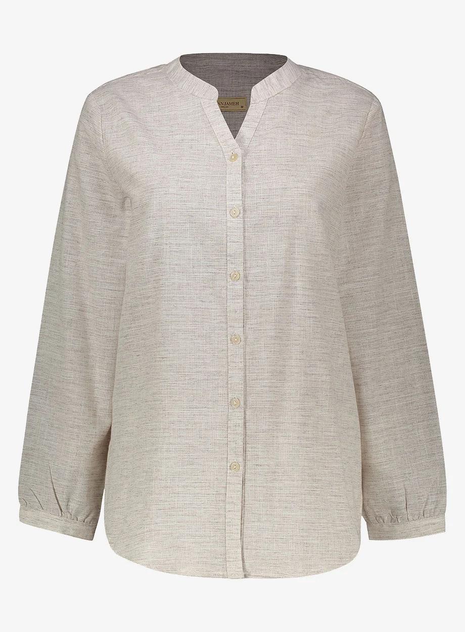شومیز آستین بلند یقه ایستاده زنانه انتخابی شیک، خنک و راحت برای خانمهایی است که به دنبال استایلی زنانه، جذاب و در عین حال کلاسیک هستند. این شومیز از ترکیب 65٪ پلیاستر و 35٪ پنبه تولید شده که همین امر باعث شده ضمن داشتن زیر دست لطیف و خنک، ماندگاری و ایستایی مناسبی نیز داشته باشد. طراحی یقه ایستاده به این شومیز ظاهری مرتب، خاص و متفاوت بخشیده و آن را برای استفاده در موقعیتهای رسمی، نیمهرسمی و حتی استایل روزمره مناسب میسازد.