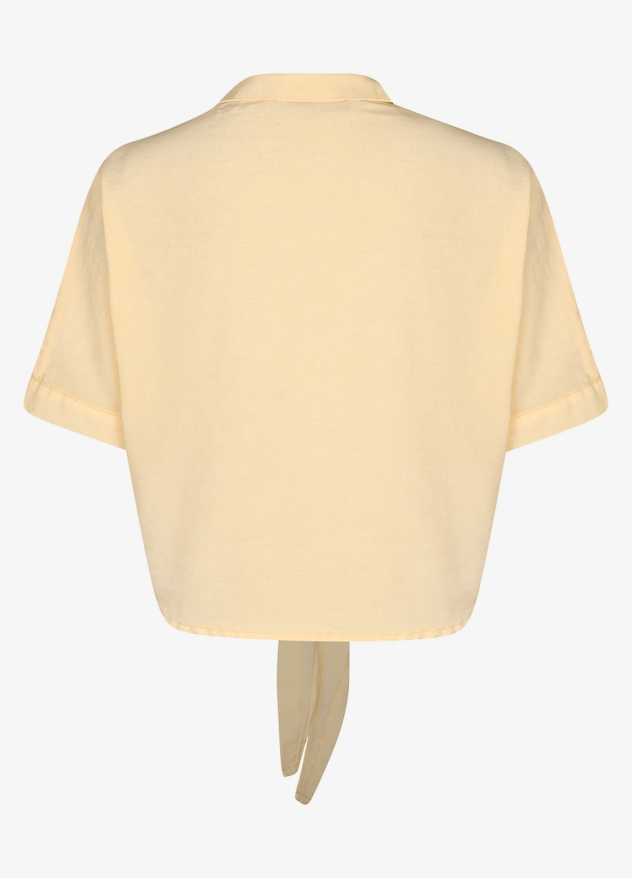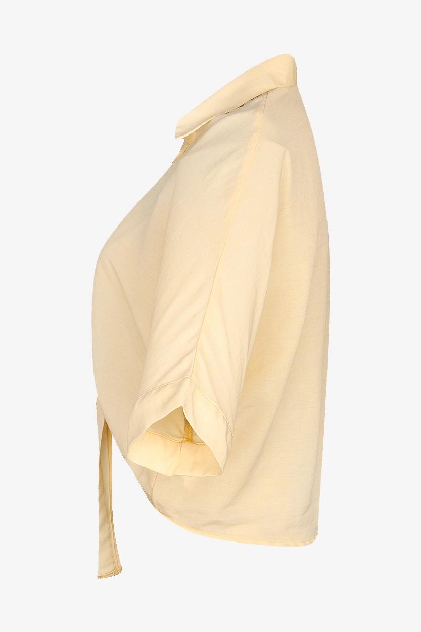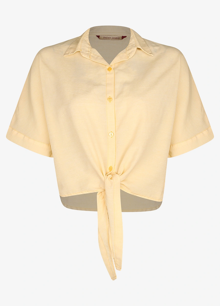 ترکیب 65 درصد پلیاستر و 35 درصد کتان باعث شده این شومیز ضمن حفظ سبکی و لطافت، از دوام و ایستایی مناسبی برخوردار باشد. پارچه آن به راحتی چروک نمیشود و در عین حال حس خنکی و راحتی پارچههای نخی را به شما منتقل میکند. طراحی جلو گرهدار و قد کوتاه (کراپ) آن، باعث میشود استایل شما جوانپسند، مدرن و پرانرژی به نظر برسد.