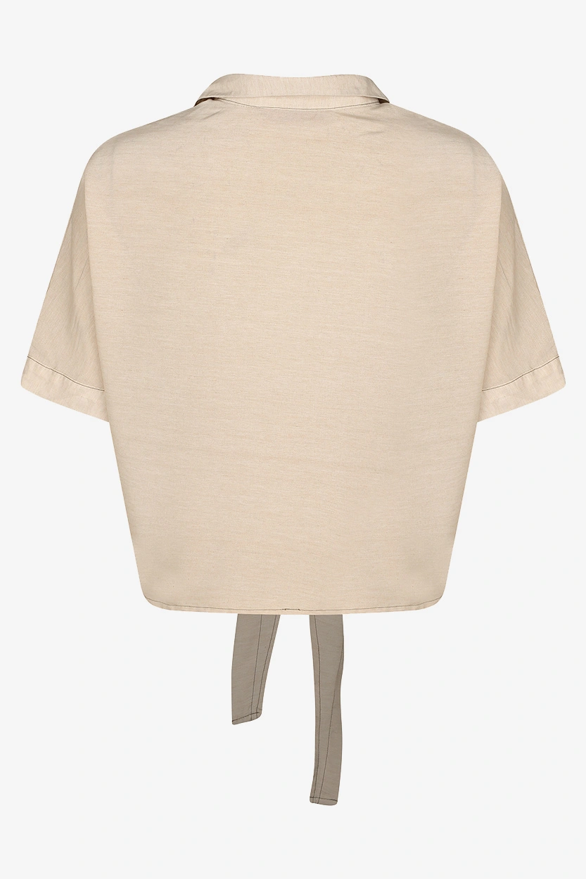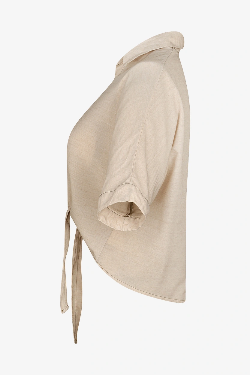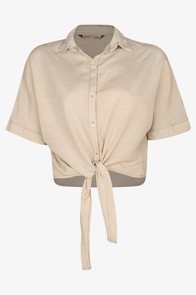 ترکیب 65 درصد پلیاستر و 35 درصد کتان باعث شده این شومیز ضمن حفظ سبکی و لطافت، از دوام و ایستایی مناسبی برخوردار باشد. پارچه آن به راحتی چروک نمیشود و در عین حال حس خنکی و راحتی پارچههای نخی را به شما منتقل میکند. طراحی جلو گرهدار و قد کوتاه (کراپ) آن، باعث میشود استایل شما جوانپسند، مدرن و پرانرژی به نظر برسد.