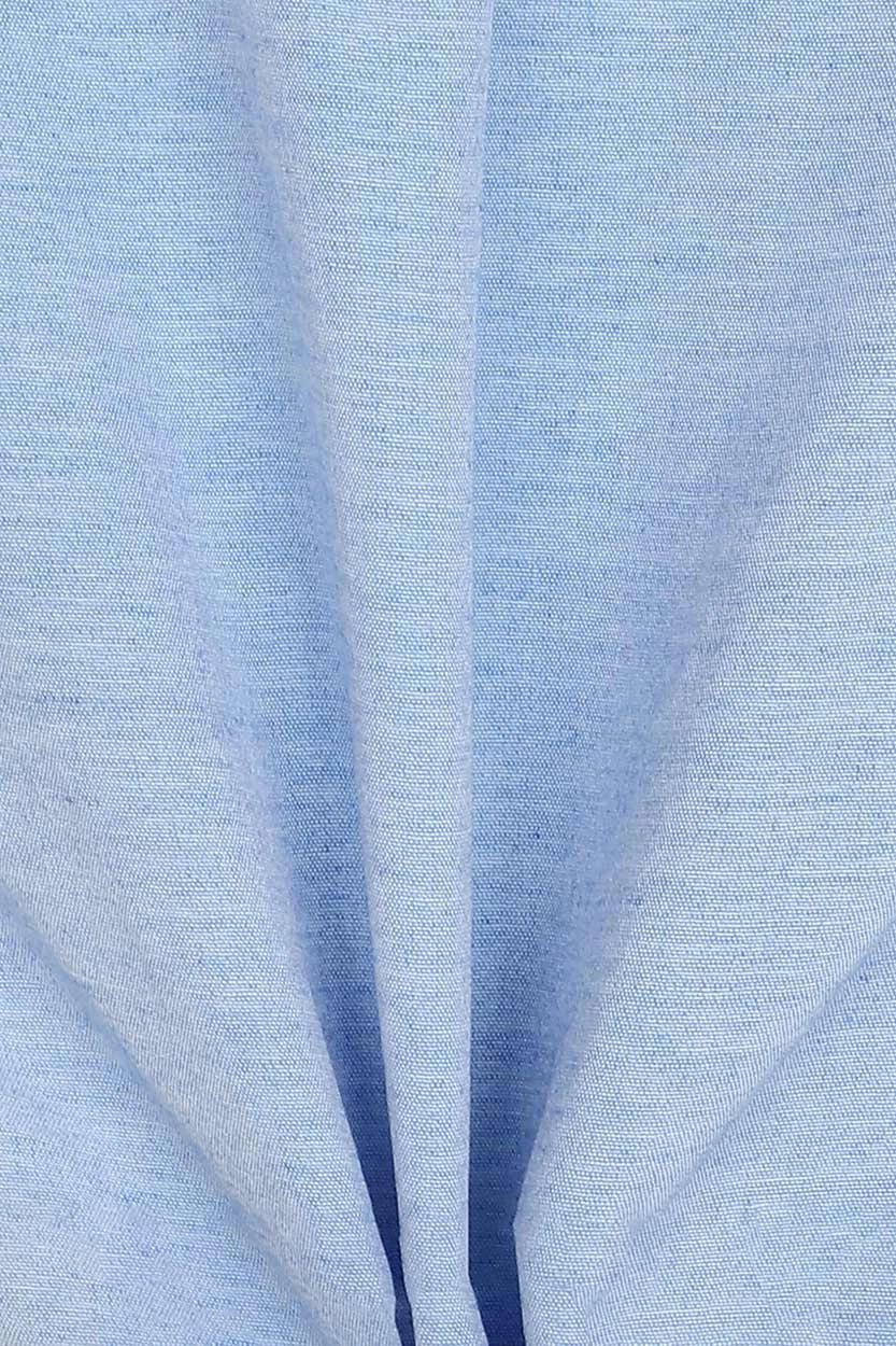 ترکیب 65 درصد پلیاستر و 35 درصد کتان باعث شده این شومیز ضمن حفظ سبکی و لطافت، از دوام و ایستایی مناسبی برخوردار باشد. پارچه آن به راحتی چروک نمیشود و در عین حال حس خنکی و راحتی پارچههای نخی را به شما منتقل میکند. طراحی جلو گرهدار و قد کوتاه (کراپ) آن، باعث میشود استایل شما جوانپسند، مدرن و پرانرژی به نظر برسد.