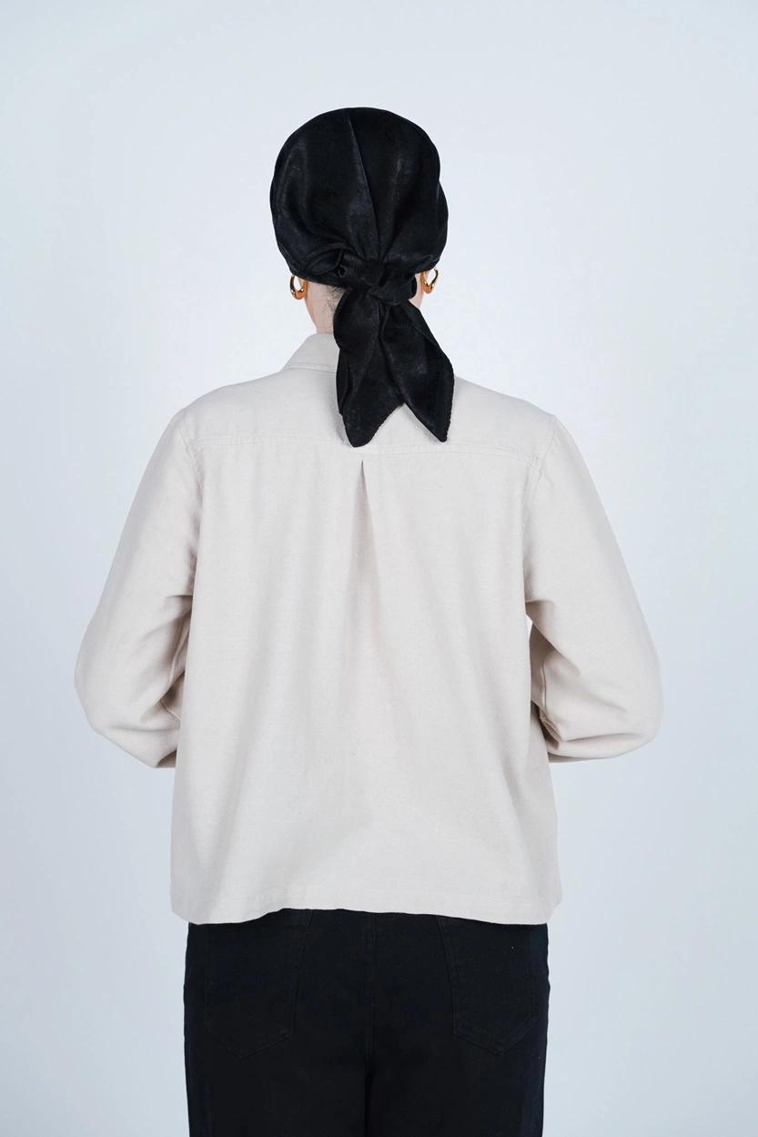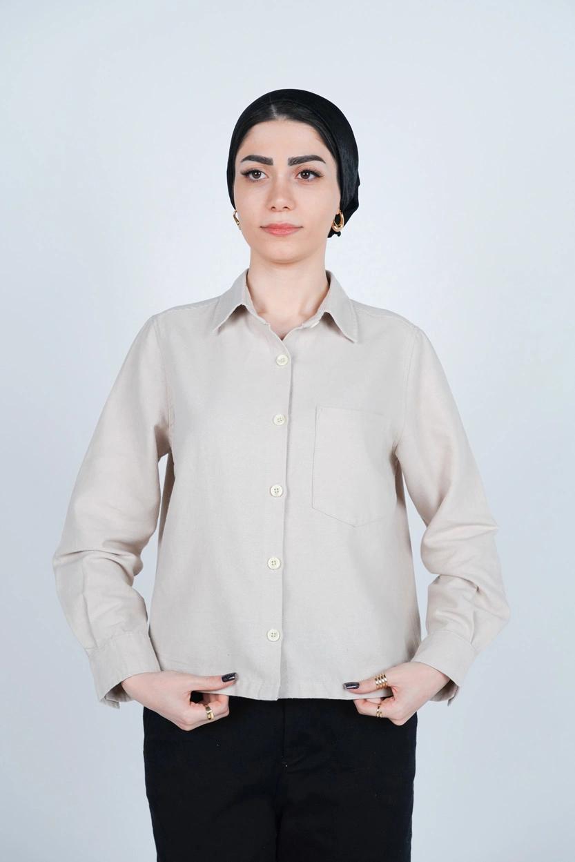 طراحی یقه برگردان در کنار آستین بلند، ظاهری مرتب، رسمی و در عین حال راحت به این لباس بخشیده است. قد کوتاه تا بالای باسن نیز باعث شده این شومیز انتخابی ایدهآل برای استایلهای مدرن و نیمهکژوال باشد. میتوانید آن را با شلوارهای فاقبلند، دامنهای جذب یا شلوار جین ست کنید تا استایل شما جذابتر و متعادلتر بهنظر برسد.