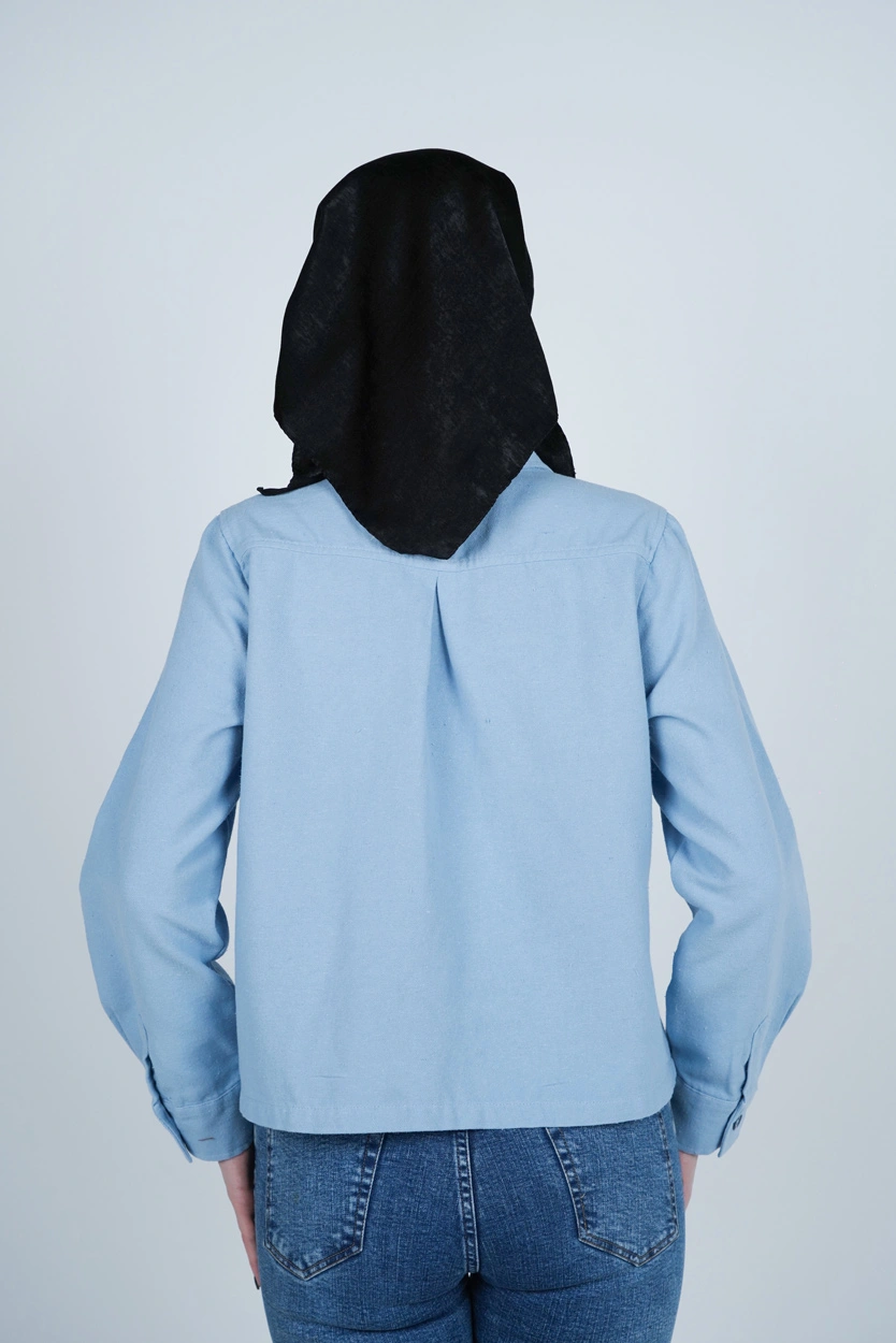 طراحی یقه برگردان در کنار آستین بلند، ظاهری مرتب، رسمی و در عین حال راحت به این لباس بخشیده است. قد کوتاه تا بالای باسن نیز باعث شده این شومیز انتخابی ایدهآل برای استایلهای مدرن و نیمهکژوال باشد. میتوانید آن را با شلوارهای فاقبلند، دامنهای جذب یا شلوار جین ست کنید تا استایل شما جذابتر و متعادلتر بهنظر برسد.