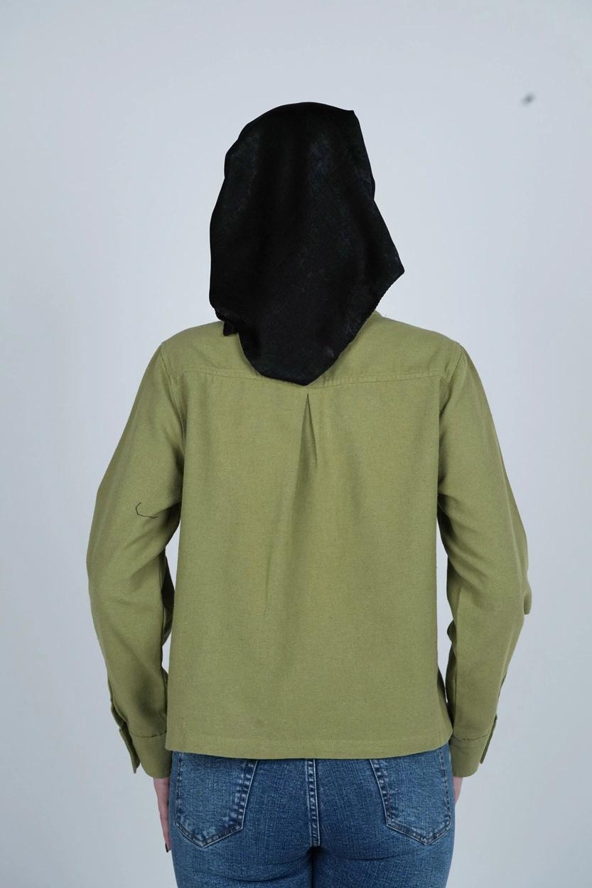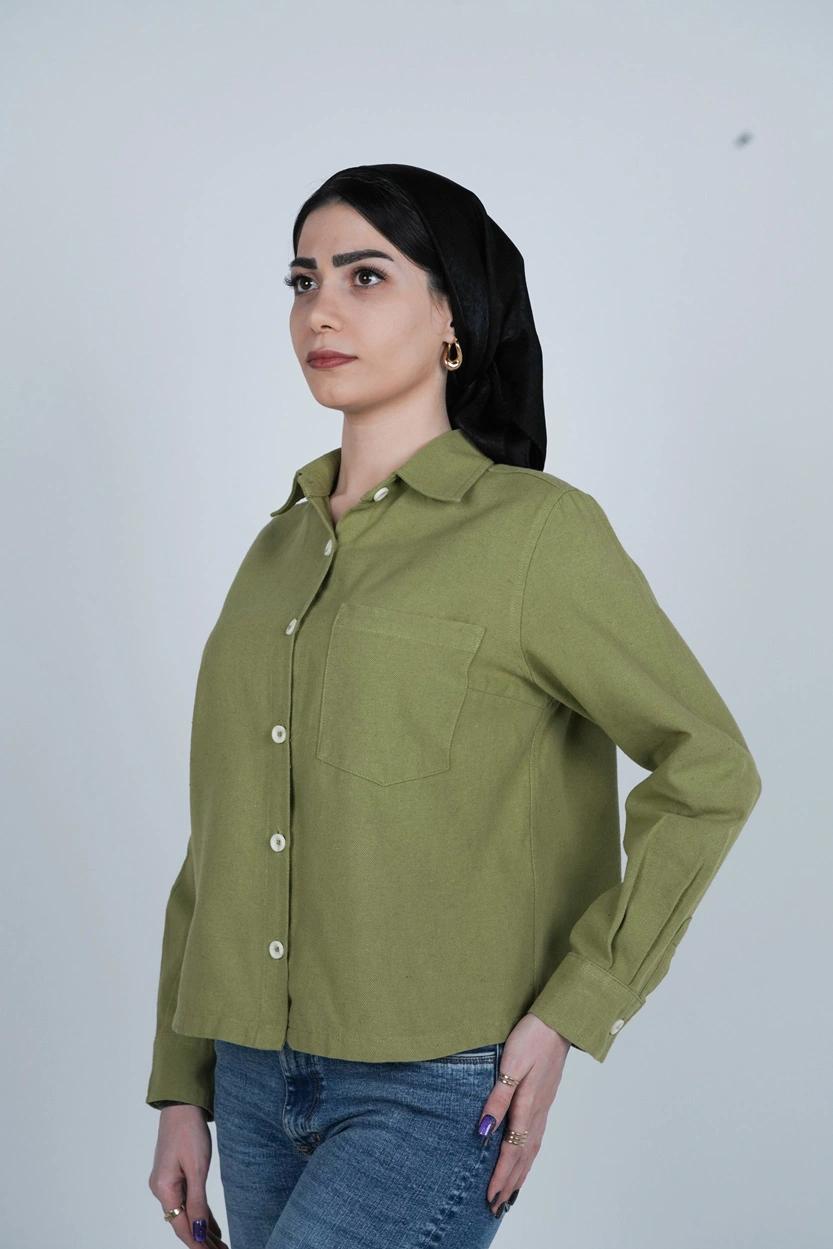 طراحی یقه برگردان در کنار آستین بلند، ظاهری مرتب، رسمی و در عین حال راحت به این لباس بخشیده است. قد کوتاه تا بالای باسن نیز باعث شده این شومیز انتخابی ایدهآل برای استایلهای مدرن و نیمهکژوال باشد. میتوانید آن را با شلوارهای فاقبلند، دامنهای جذب یا شلوار جین ست کنید تا استایل شما جذابتر و متعادلتر بهنظر برسد.