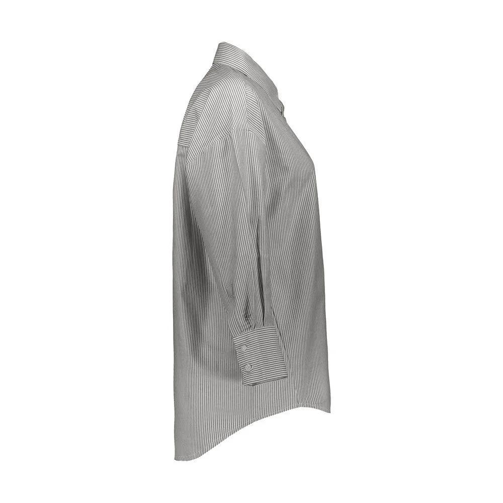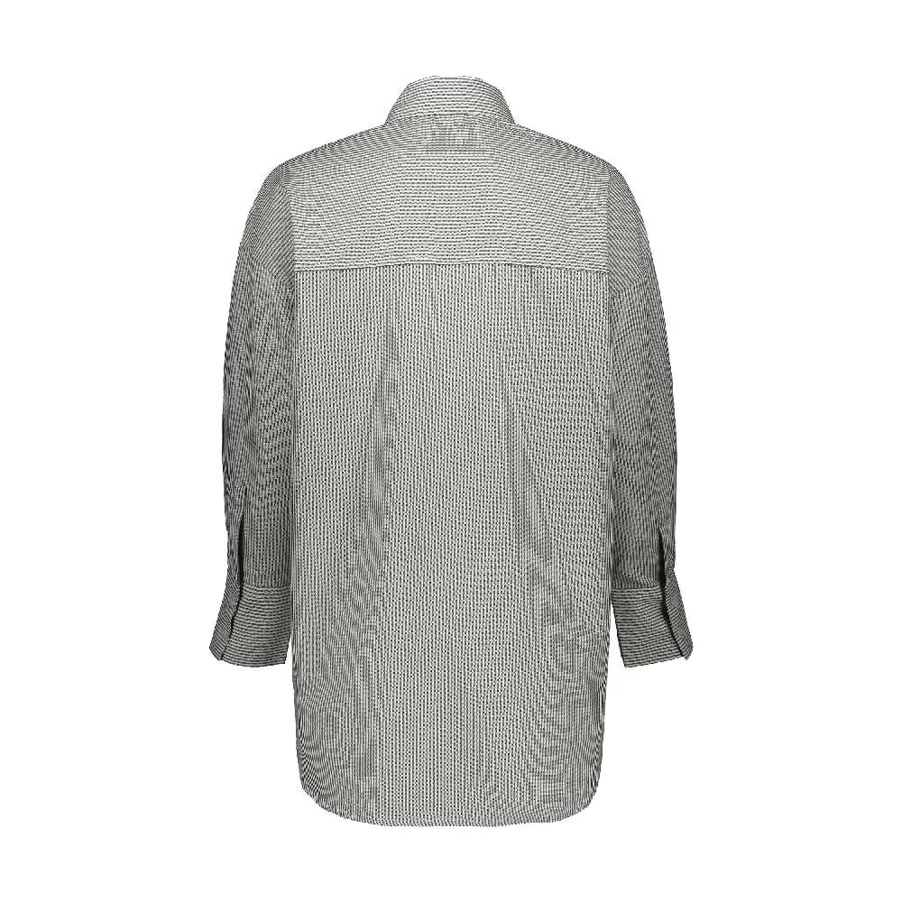 شومیز ( پیراهن ) زنانه آستین بلند تولید شرکت پاتن جامه می باشد / جنس پیراهن صد در صد پنبه ( نخی ) می باشد. طرح راه راه ریز.