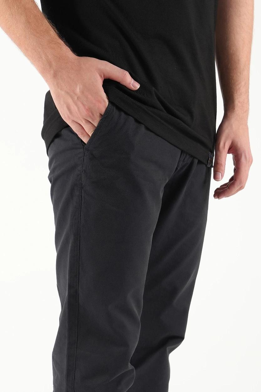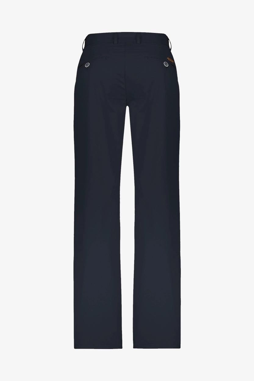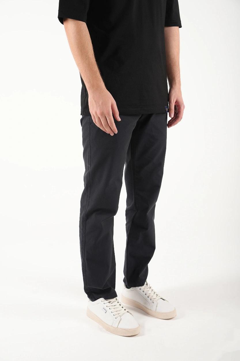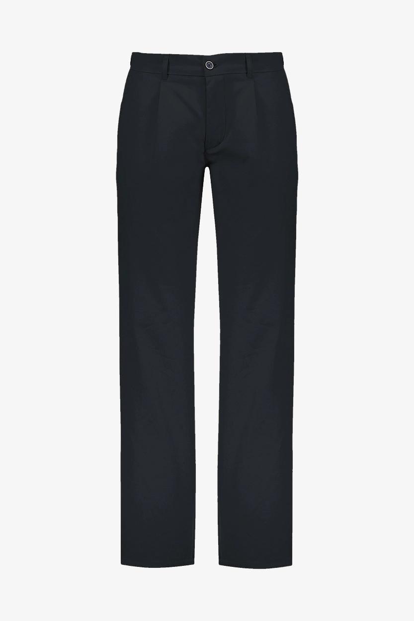 استایل این شلوار بهصورت راسته با فاق متوسط و نسبتاً بلند است که به بهبود فرم اندام کمک کرده و راحتی بیشتری در هنگام پوشیدن ایجاد میکند. نحوه بسته شدن آن بهصورت دکمه و زیپ است که ترکیبی از استحکام و سهولت استفاده را ارائه میدهد. رنگ سرمهای سیر این شلوار نیز ظاهری شیک و کلاسیک ایجاد میکند و به راحتی با انواع پوششها ست میشود.