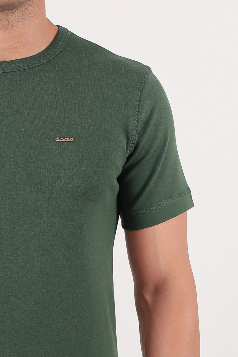 پارچه این تیشرت ترکیبی از پنبه و لاکرا است؛ یعنی در کنار لطافت و خاصیت تنفسی پنبه، کمی کشسانی نیز دارد که باعث راحتی بیشتر در حرکت میشود. ضخامت کم پارچه آن را به گزینهای خنک و سبک برای فصول گرم تبدیل کرده است. یقه گرد کشبافت تیشرت بهخوبی روی فرم گردن قرار میگیرد و ظاهر ساده آن را کامل میکند.