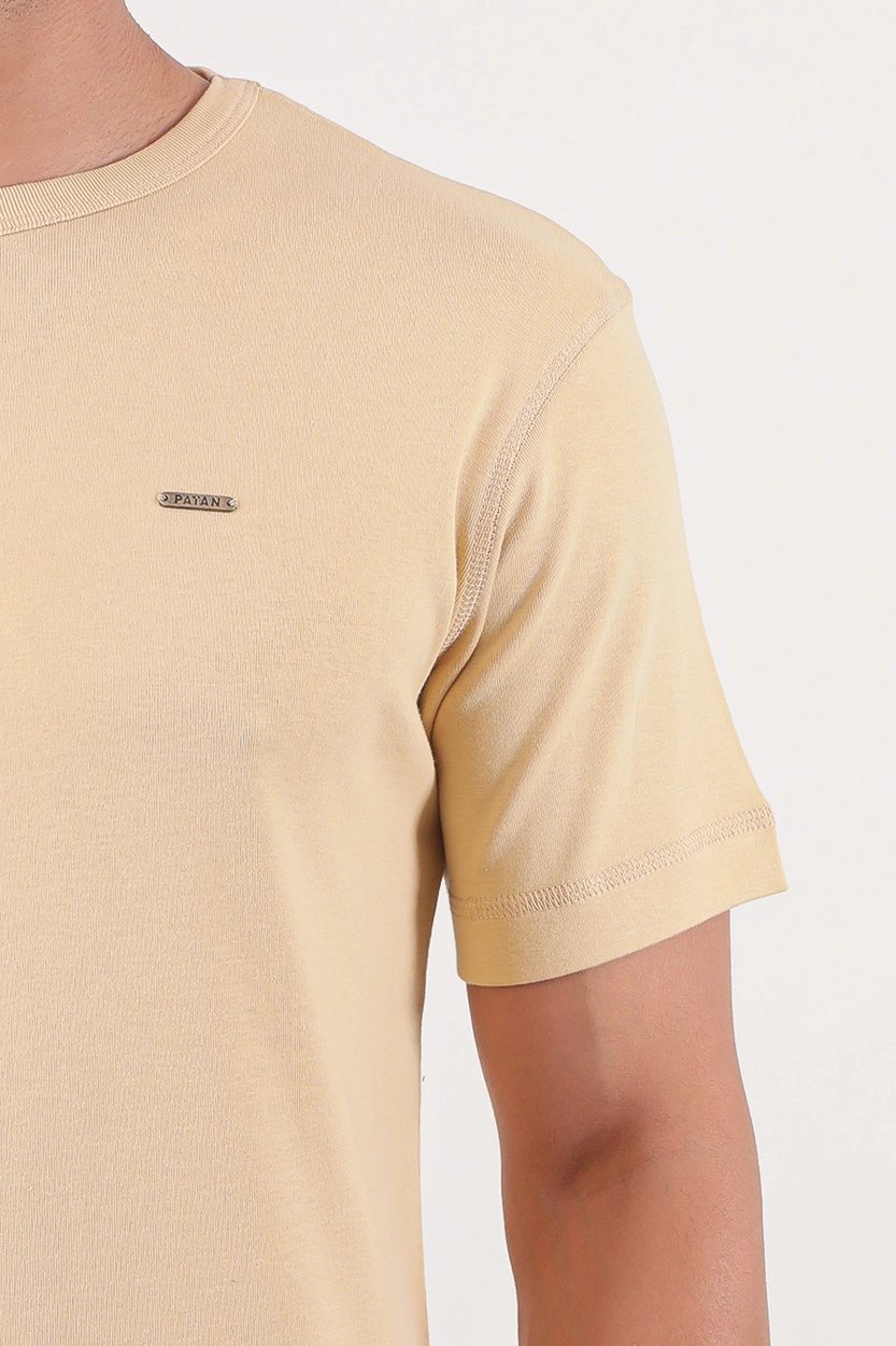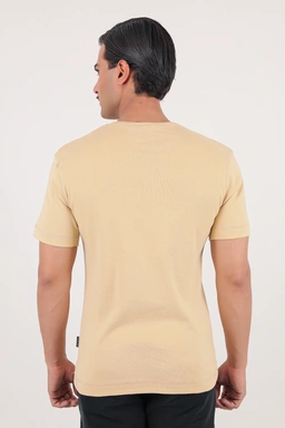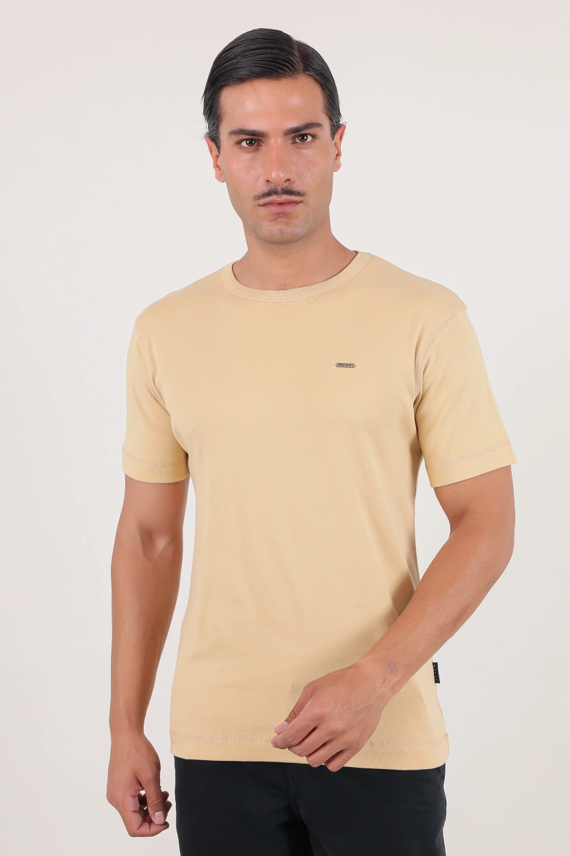 پارچه این تیشرت ترکیبی از پنبه و لاکرا است؛ یعنی در کنار لطافت و خاصیت تنفسی پنبه، کمی کشسانی نیز دارد که باعث راحتی بیشتر در حرکت میشود. ضخامت کم پارچه آن را به گزینهای خنک و سبک برای فصول گرم تبدیل کرده است. یقه گرد کشبافت تیشرت بهخوبی روی فرم گردن قرار میگیرد و ظاهر ساده آن را کامل میکند.