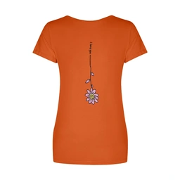 تیشرت یقه گرد زنانه نارنجی رنگ پشت چاپ دار لانگ 100 درصد پنبه میباشد مورد استفاده:اسپرت، روزمره، مهمانی