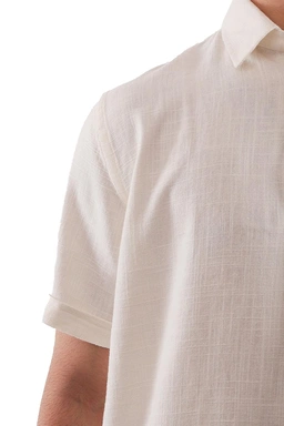 پیراهن آستین کوتاه یقه چهار دکمه لینن مردانه با طراحی ساده، پارچه خنک و رنگ شیری روشن، یک انتخاب بینقص برای روزهای گرم سال و موقعیتهای مختلف است. چه برای استایل روزمره، چه مهمانیها و چه سفر، این پیراهن با طراحی نیمه آزاد و رنگ ملایم، همیشه شیک و راحت خواهد بود.