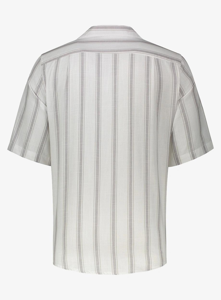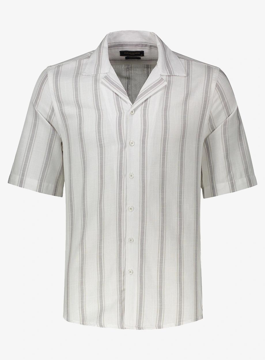 راهراه سفید – آبی – طوسی: مناسب برای موقعیتهای نیمهرسمی و کاری، قابل ترکیب با جین تیره یا کتان طوسی.