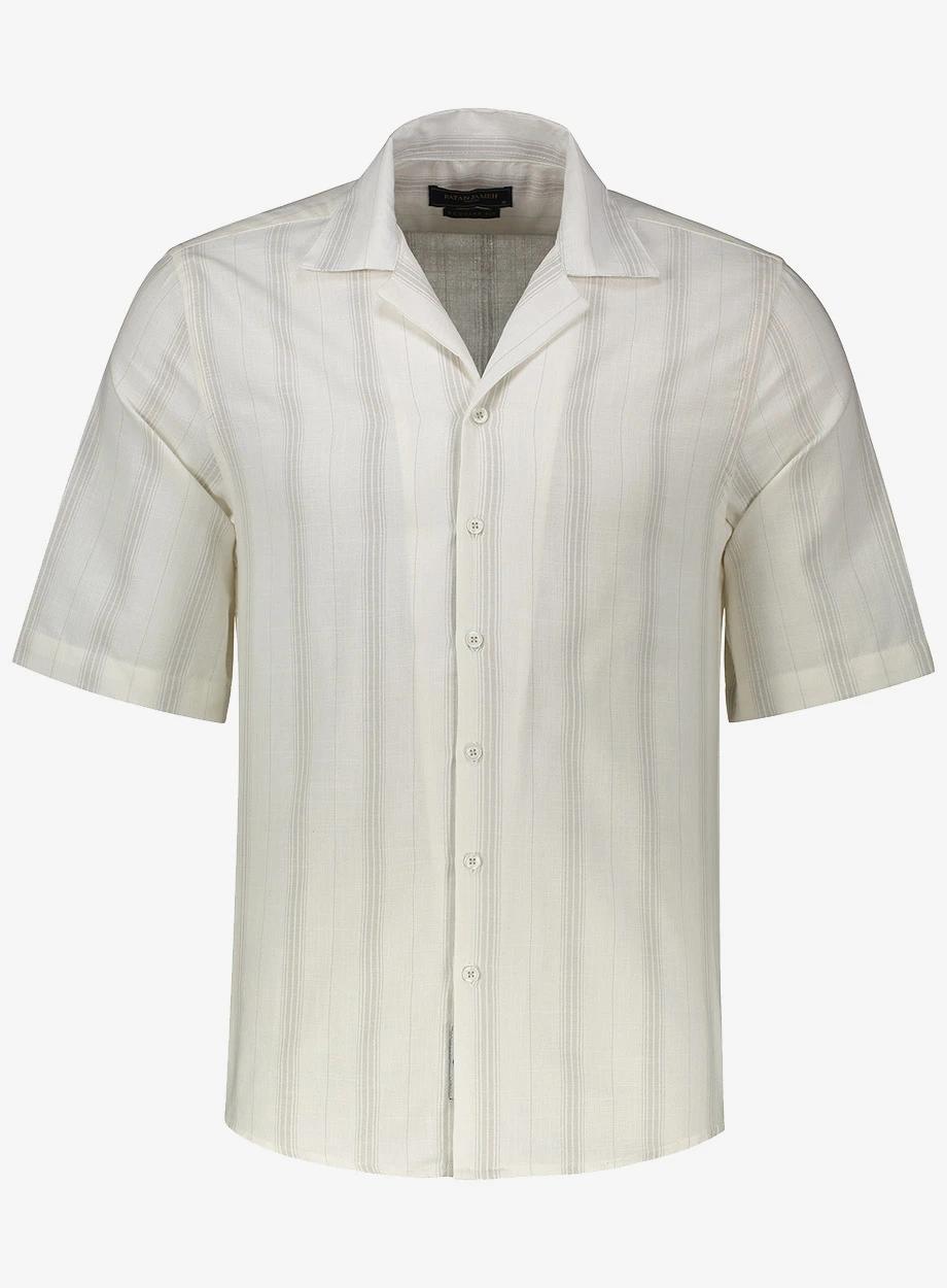 راهراه سفید – آبی – طوسی: مناسب برای موقعیتهای نیمهرسمی و کاری، قابل ترکیب با جین تیره یا کتان طوسی.