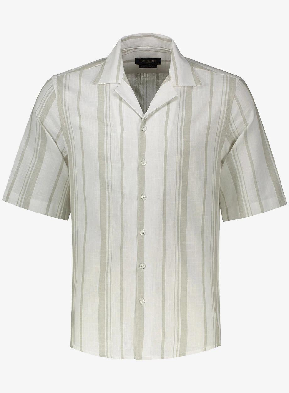 راهراه سفید – آبی – طوسی: مناسب برای موقعیتهای نیمهرسمی و کاری، قابل ترکیب با جین تیره یا کتان طوسی.