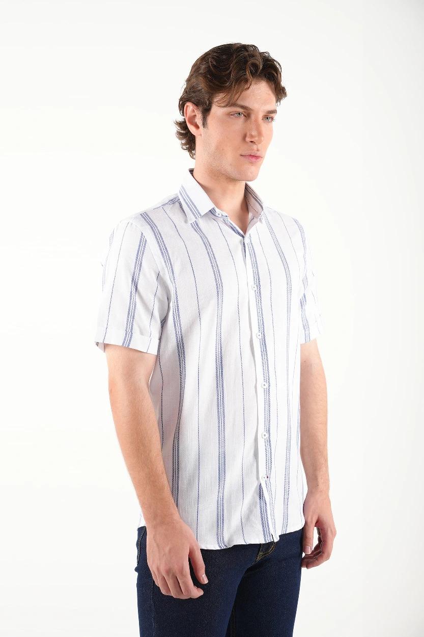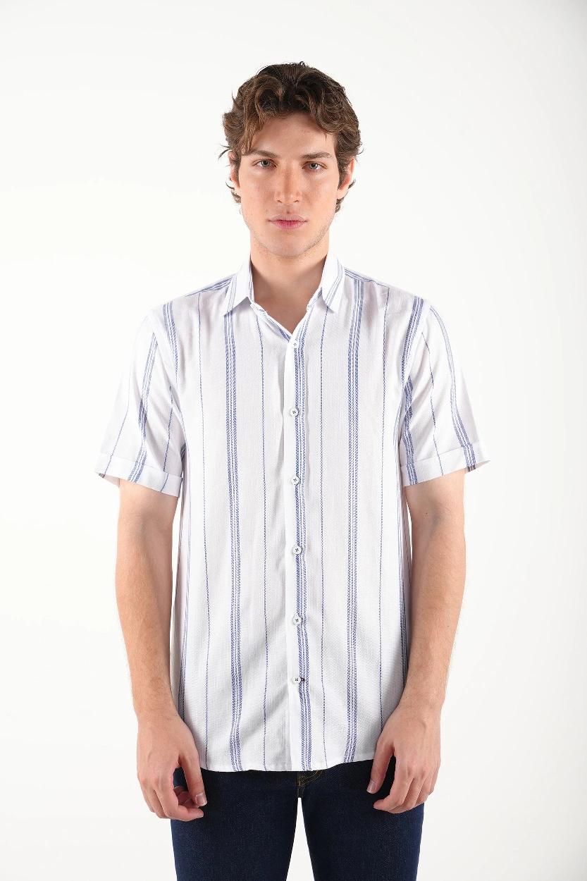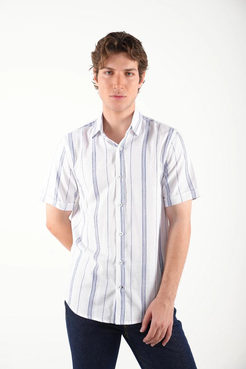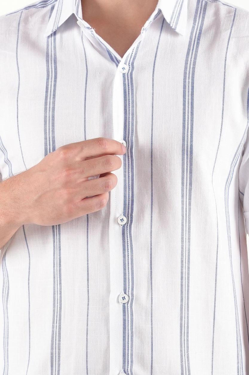 راهراه سفید – آبی : مناسب برای موقعیتهای نیمهرسمی و کاری، قابل ترکیب با جین تیره یا کتان طوسی.