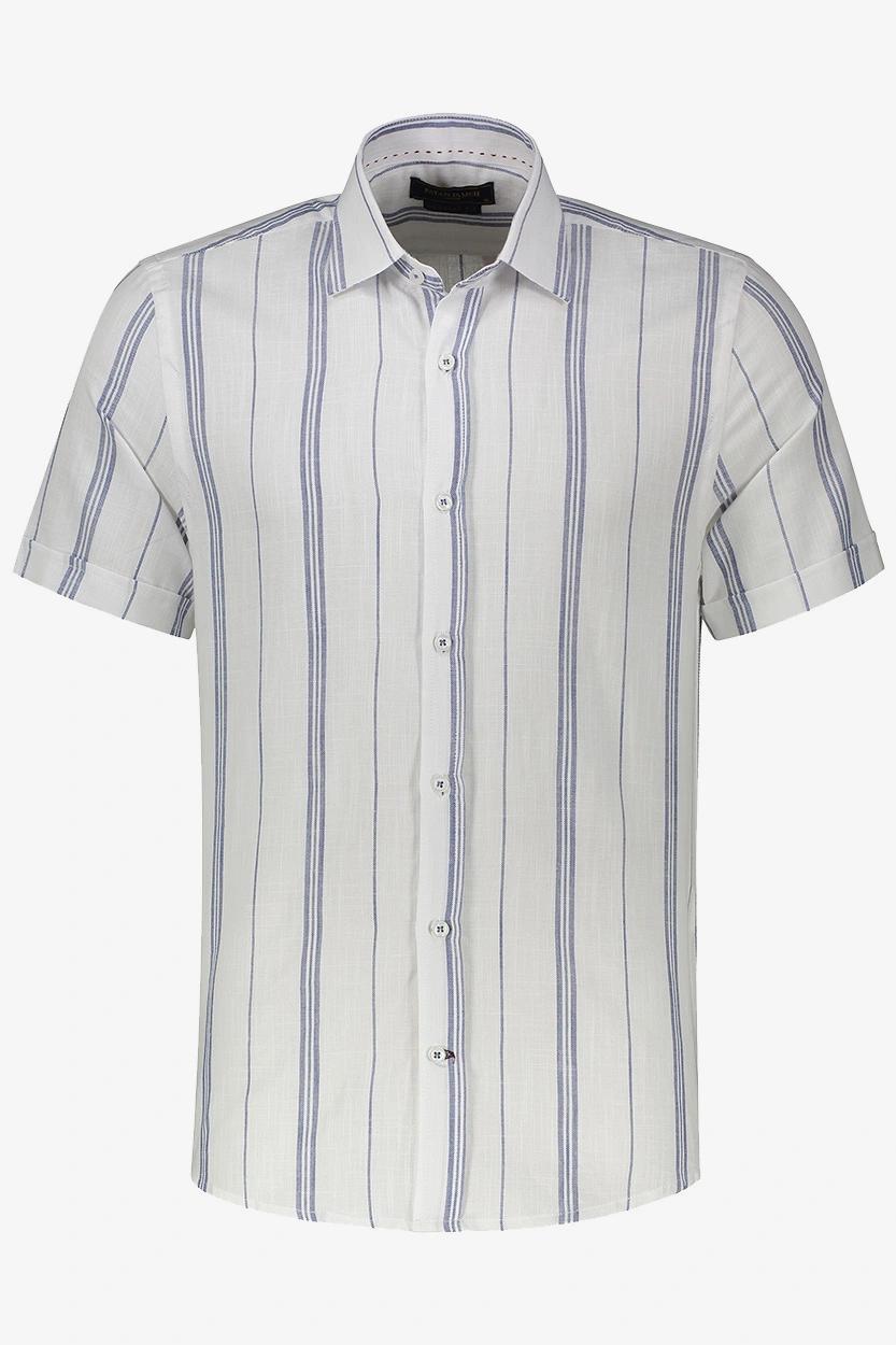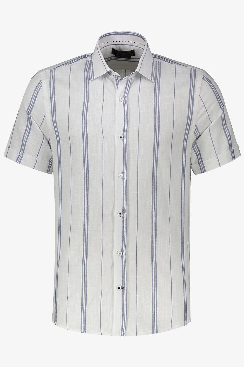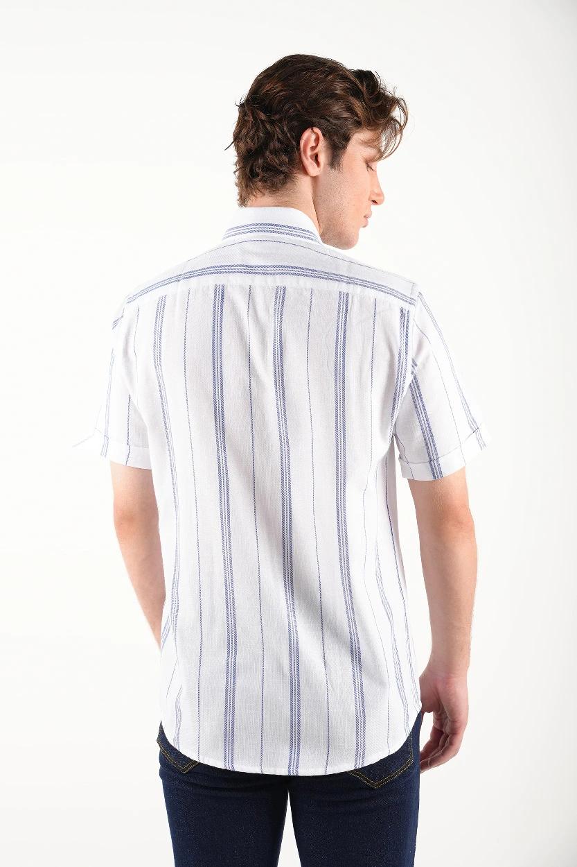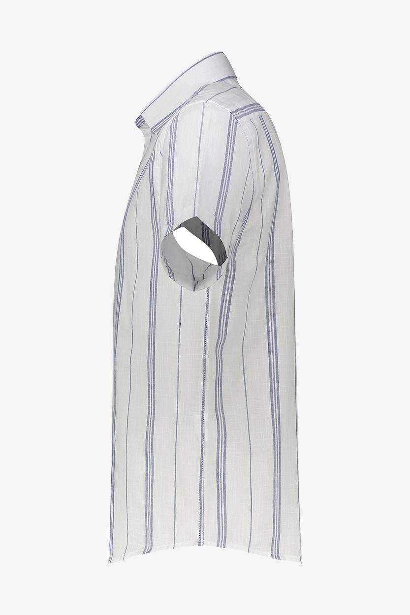 راهراه سفید – آبی : مناسب برای موقعیتهای نیمهرسمی و کاری، قابل ترکیب با جین تیره یا کتان طوسی.