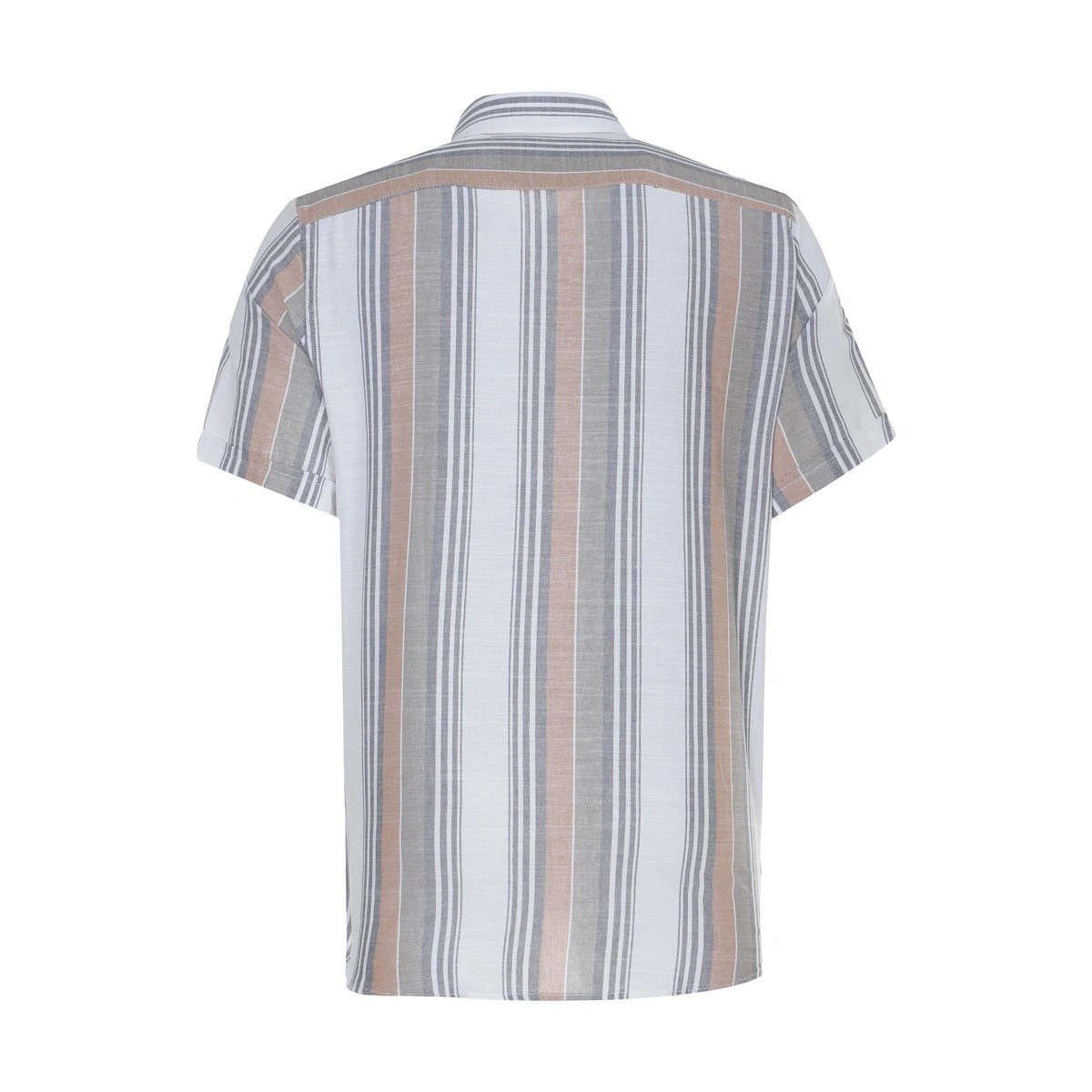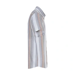 پیراهن آستین کوتاه مردانه جنس پارچه صد در صد پنبه و پارچه طرح دار (راه راه) می باشد. آستین کوتاه بدون جیب استایل معمولی / آزاد. پارچه خنک زیر دست لطیف مناسب فصول گرم و نیمه گرم.