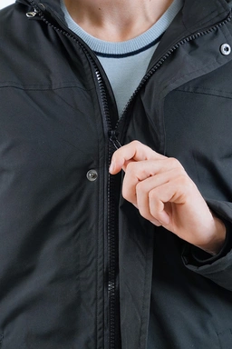 طراحی این کاپشن بهگونهای است که راحتی و کارایی را همزمان ارائه میدهد. بخش جلویی لباس دارای زیپ مرکزی روان و دکمههای فشاری است تا بتوانید بسته به شرایط آبوهوا، میزان باز و بسته بودن آن را تنظیم کنید. کلاه بنددار نیز به شما کمک میکند تا در روزهای بادخیز یا بارانی، پوشش کاملتری داشته باشید. علاوه بر این، دوخت تمیز و طراحی خوشفرم کاپشن باعث میشود بهخوبی روی بدن بنشیند و ظاهری مرتب و مدرن ایجاد کند.