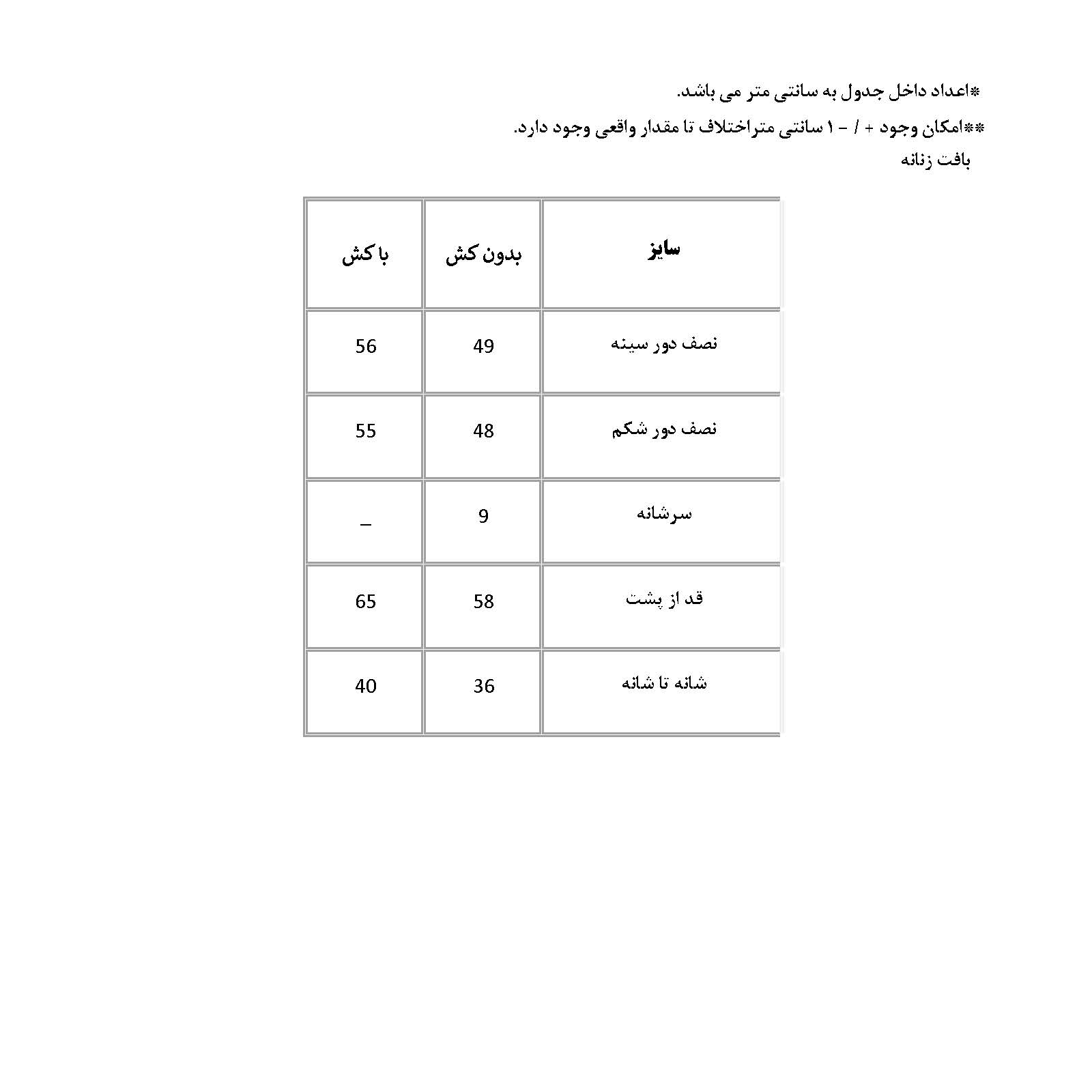 مشخصات فنی بافت آستین بلند زنانه