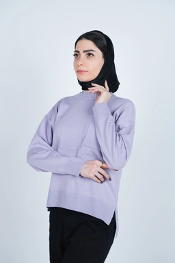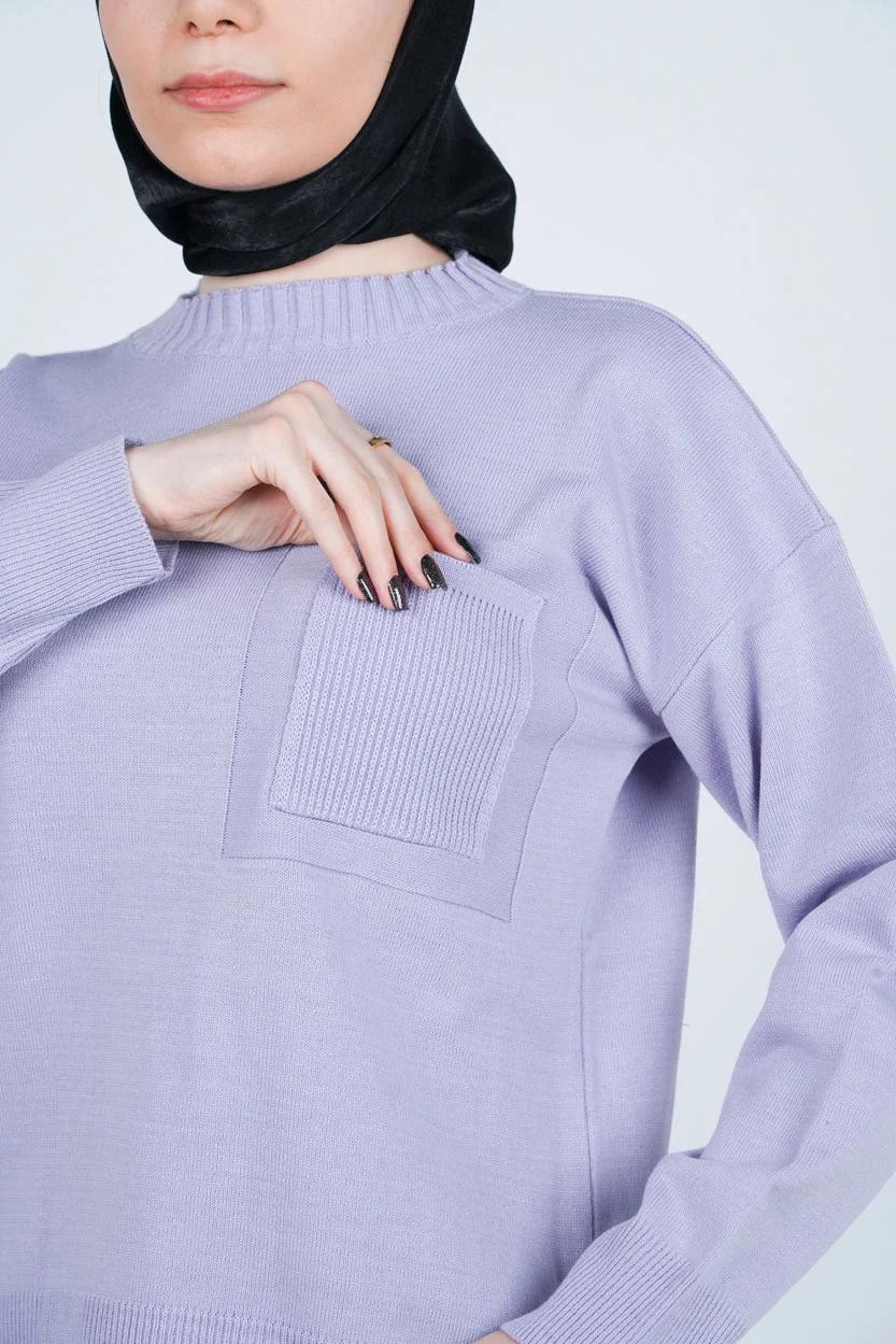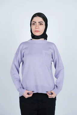 بافت یقه گرد آستین بلند جیب دار زنانه