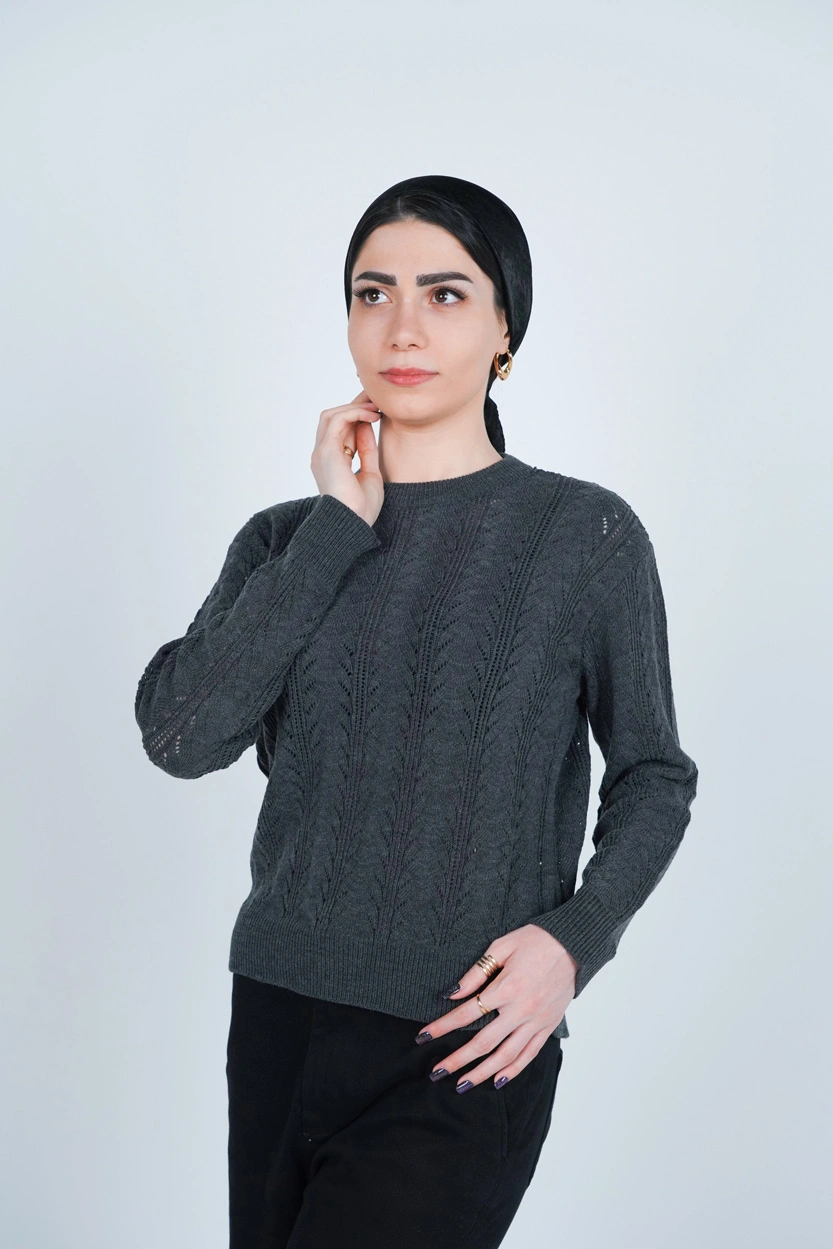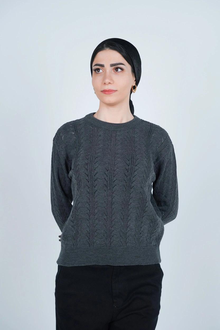 بافت آستین بلند یقه گرد زنانه – ترکیب لطافت و گرما در استایل زمستانی