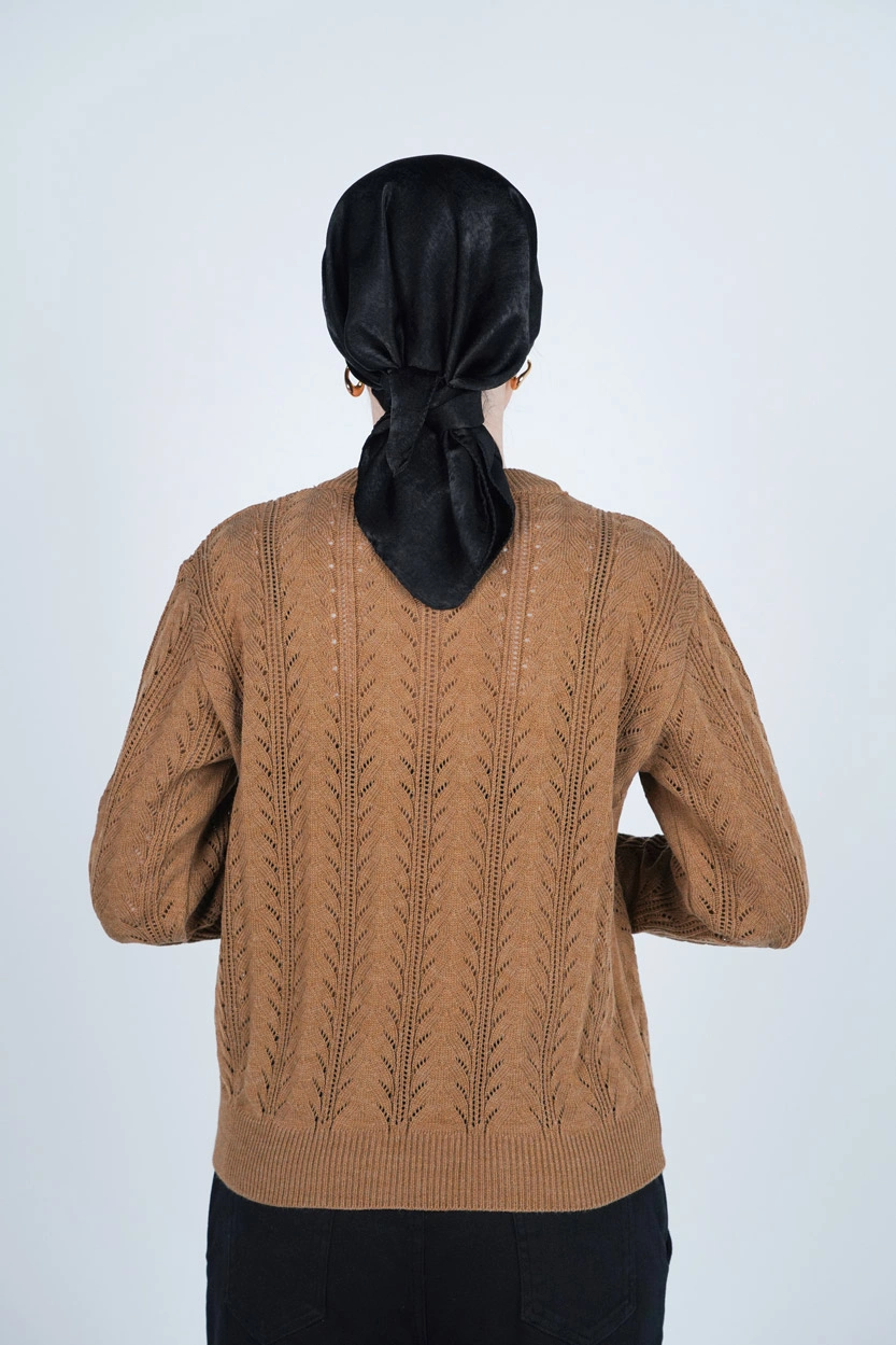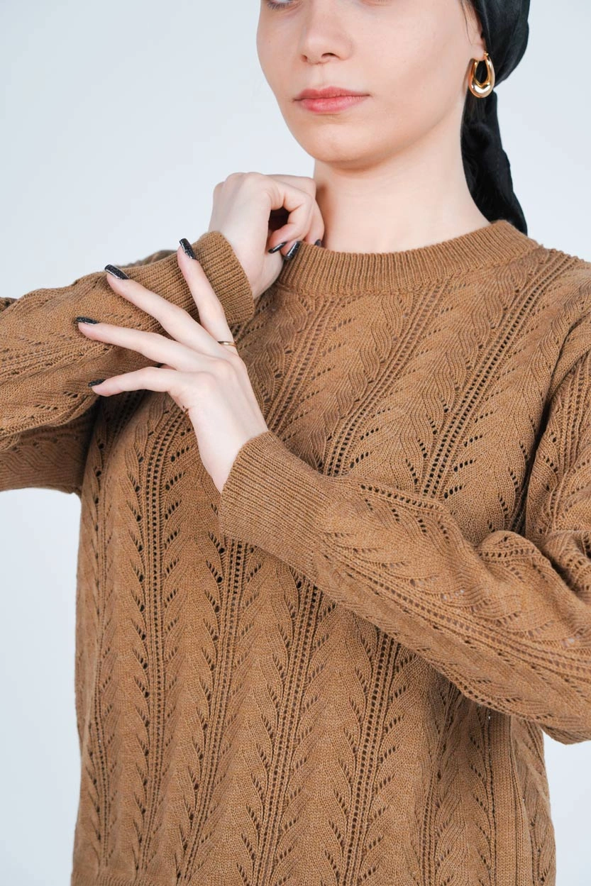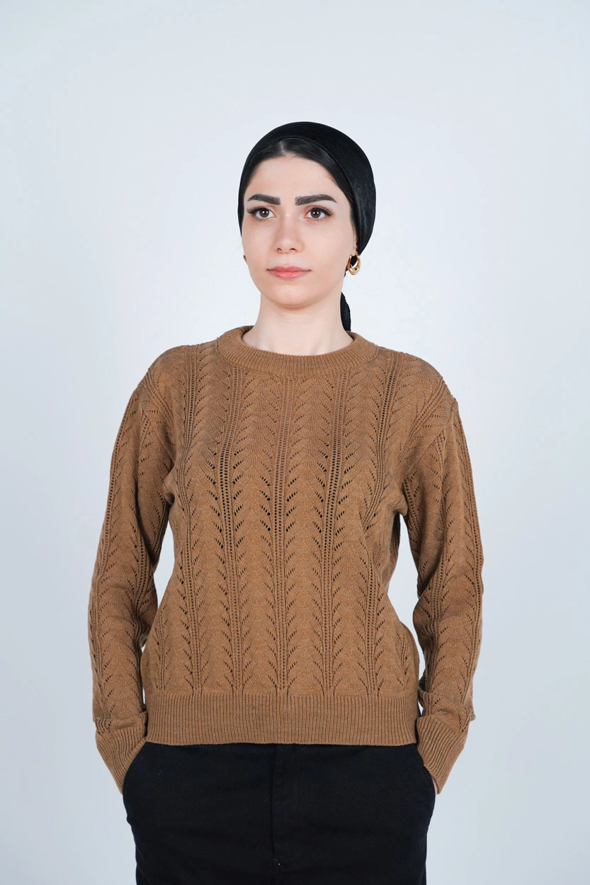 بافت آستین بلند یقه گرد زنانه – ترکیب لطافت و گرما در استایل زمستانی