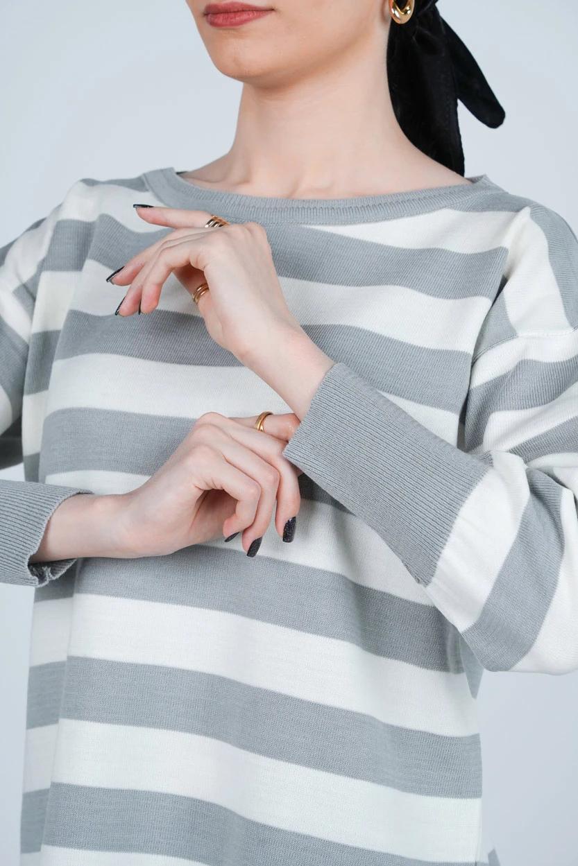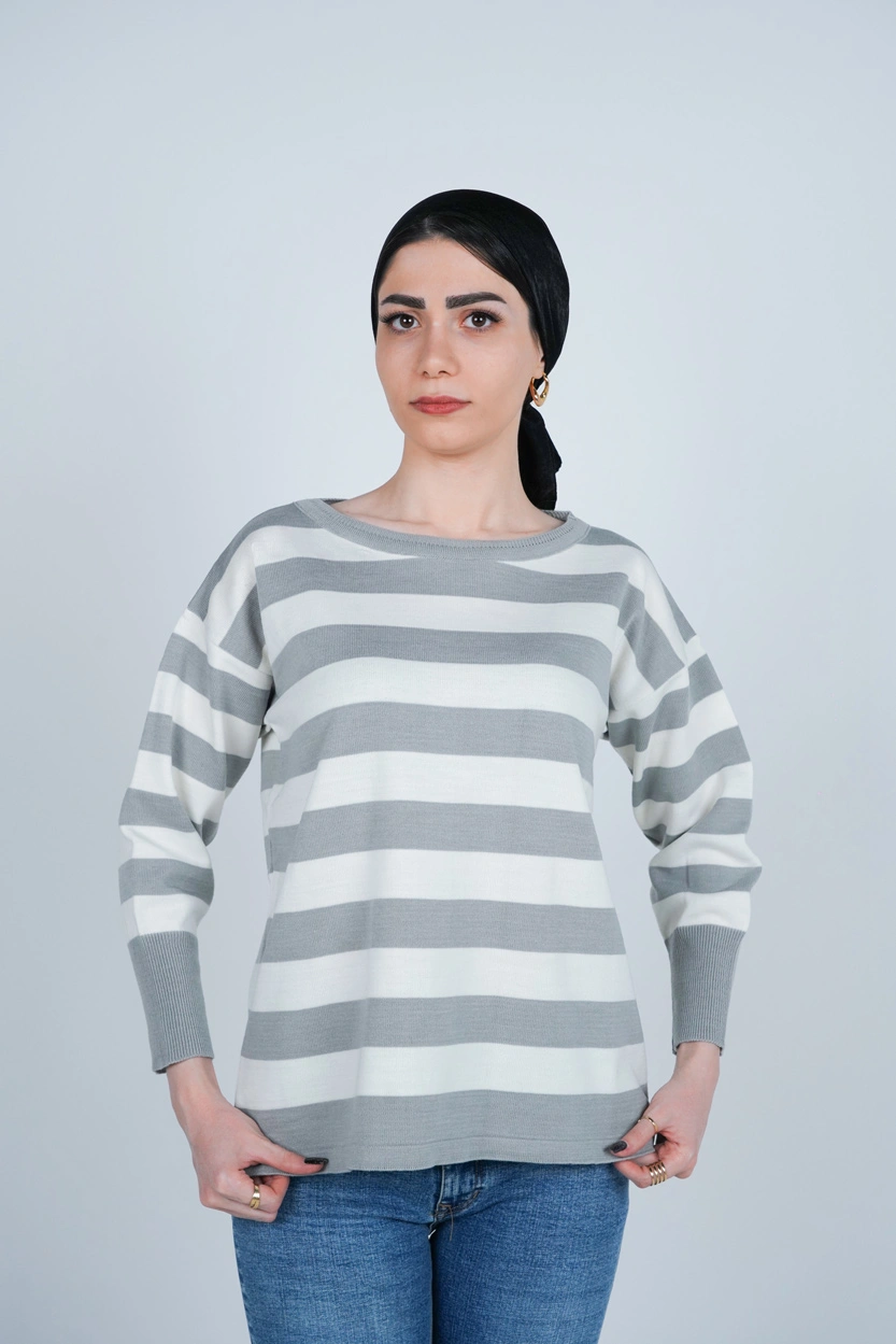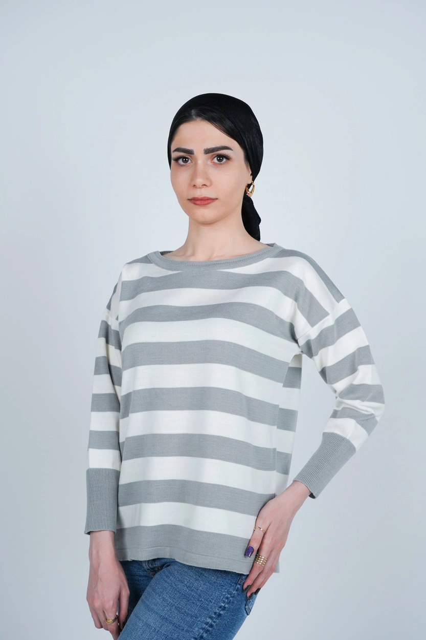 بافت راهراه زنانه در طیف رنگی زیبا و کاربردی تولید شده است تا بتواند پاسخگوی سلیقههای مختلف باشد. رنگهای طوسی روشن و کرم برای استایلهای مینیمال و ملایم، سبز روشن برای ظاهری تازه و جوانپسند، سبز تیره برای ترکیبهای پاییزی و زمستانی، و سرمهای برای استایلی رسمیتر و کلاسیک انتخابهایی عالی هستند. ترکیب رنگهای راهراه در این بافت، بهگونهای طراحی شده که با انواع شلوار جین، پارچهای یا دامن بهراحتی ست میشود.