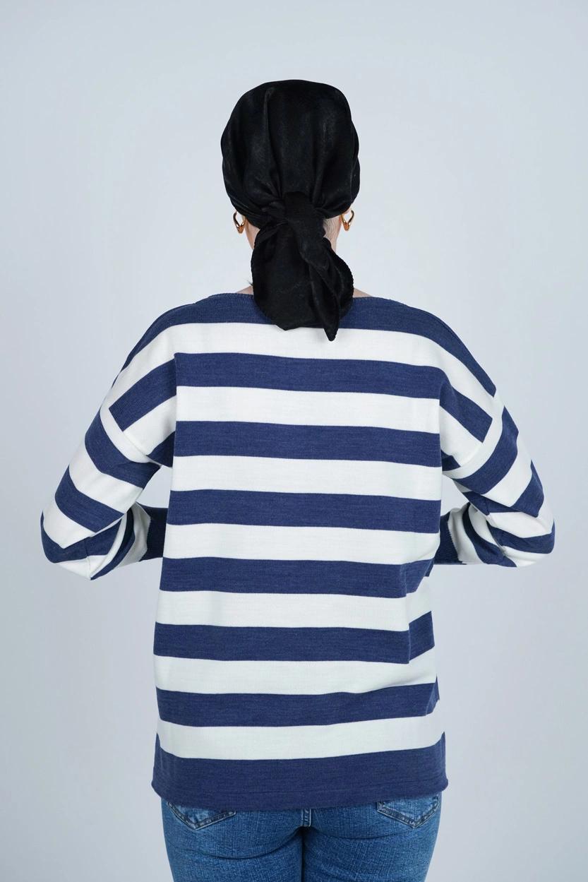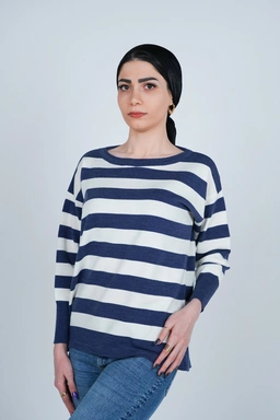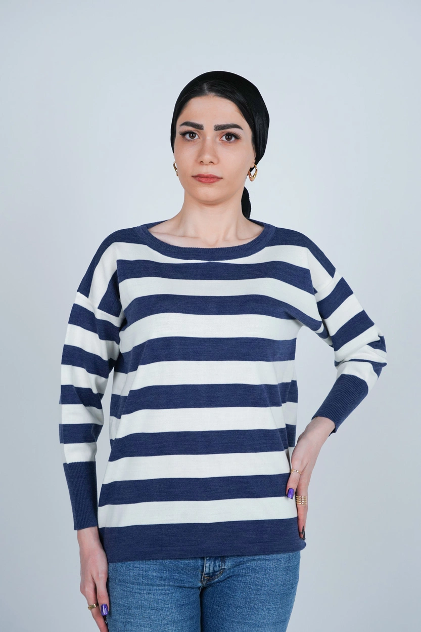 • نوع محصول: بافت زنانه آستین بلند طرح راه‌راه