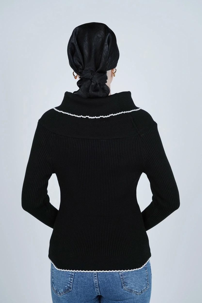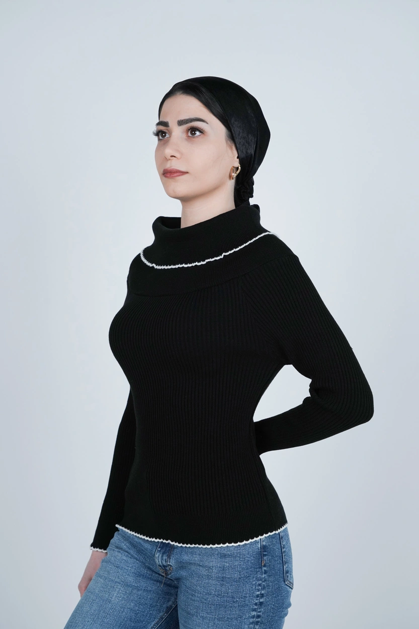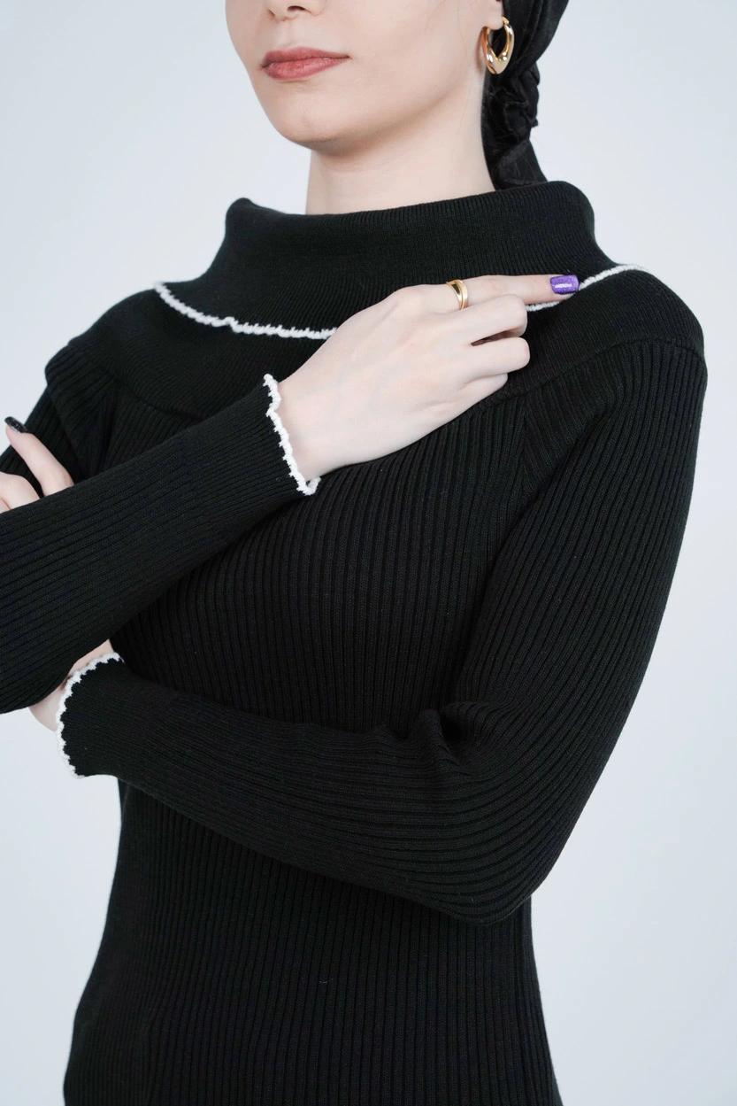 طراحی یقه ایستاده یکی از ویژگیهای اصلی این بافت است. این نوع یقه با ایجاد ظاهری مرتب و خاص، علاوه بر زیبایی، گرمای بیشتری برای گردن فراهم میکند. یقه ایستاده در ترکیب با آستین بلند و قد تا روی باسن باعث میشود این لباس بهخوبی فرم بدن را پوشش دهد و استایلی مرتب، مینیمال و مدرن بسازد. بافت منظم و تراکم مناسب تار و پود لباس، آن را از نظر ظاهری چشمنواز و از نظر کاربردی کاملاً مناسب روزهای سرد سال کرده است.