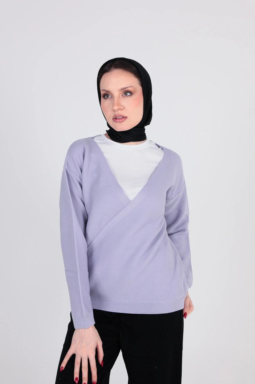 بافت آستین بلند یقه هفت زنانه