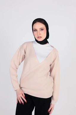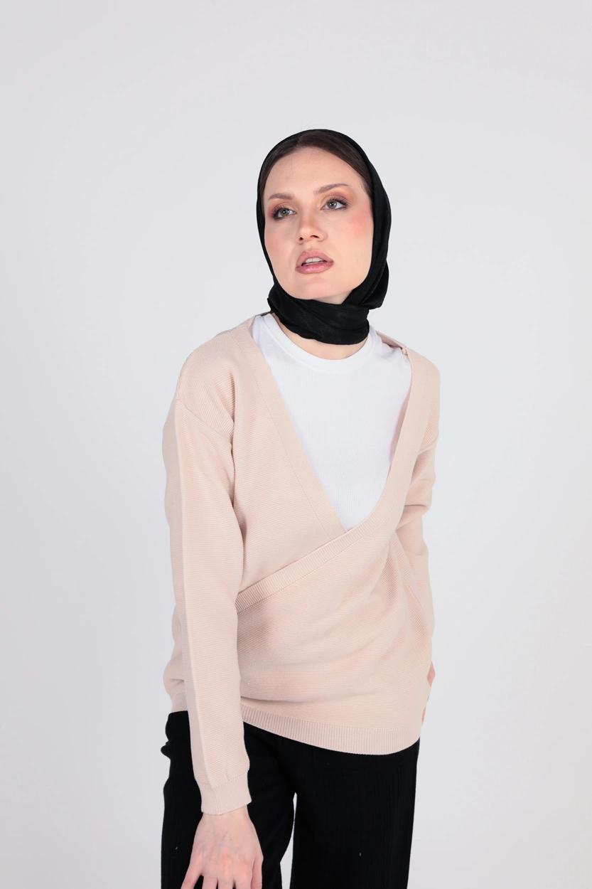 خرید بافت یقه هفت باز زنانه، پلیور بافت یقه هفت باز از جنس جنس: 50 %اکریلیک ، 50% پنبه - بافت ، زیر دست بسیار لطیف ، گرم مناسب استفاده در فصول سرد. ضخامت متوسط.