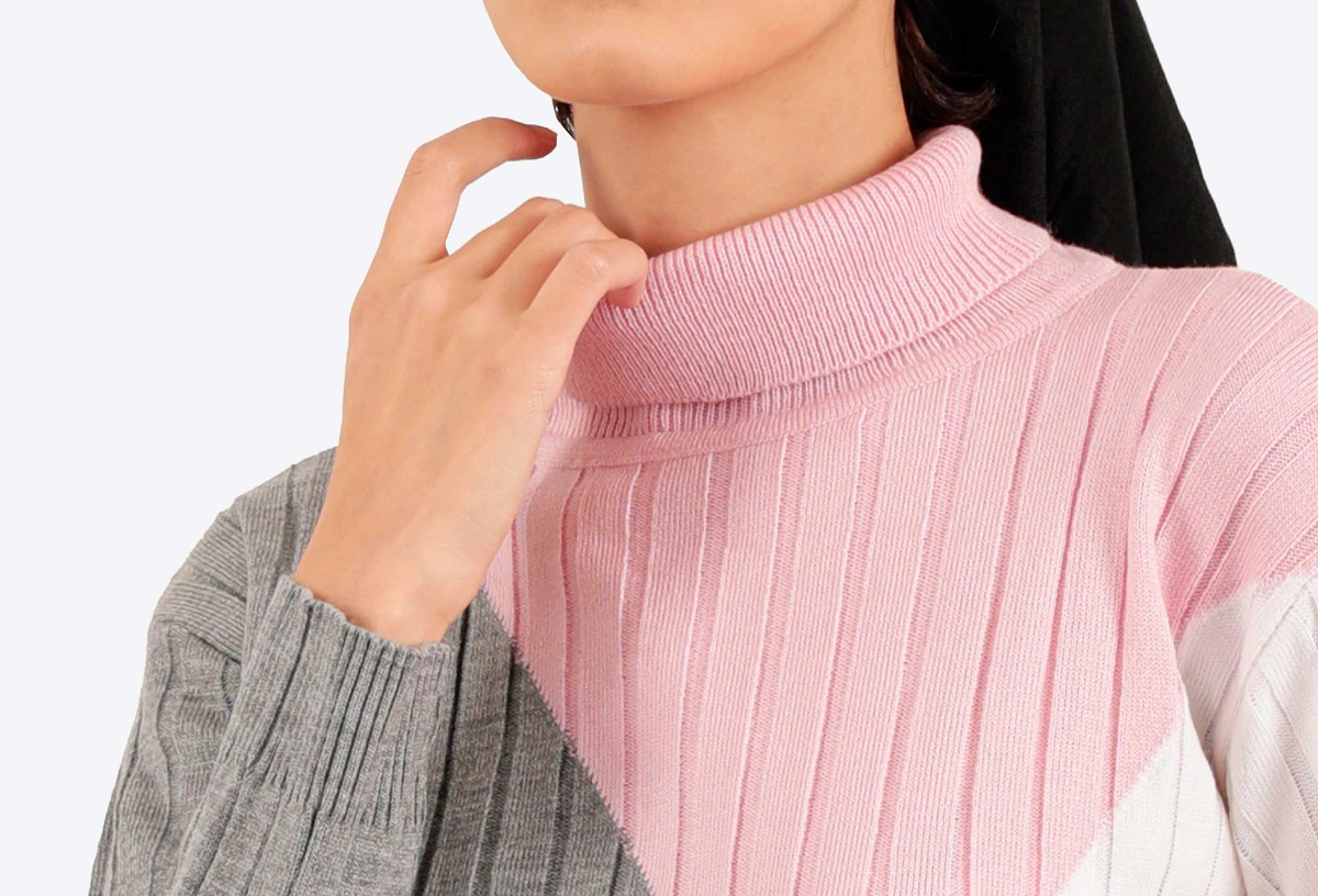 بافت یقه اسکی زنانه آستین بلند. بافت گرم صد در صد اکریلیک با ضخامت مناسب ، قد تا روی کمر فری سایز می باشد.