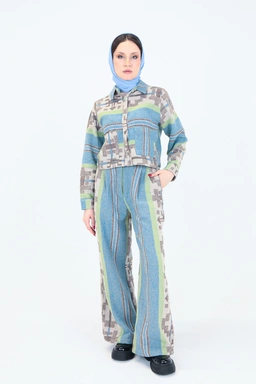 یکی از نقاط قوت این ست، استفاده از طرحهای هندسی رنگی است. طرحها در سه ترکیب رنگی ساخته شدهاند: سبز و زرد، سبز و آبی و قهوهای، و ترکیب ملایم سبز–آبی. این طرحها استایل شما را خاص و منحصربهفرد میکنند و بدون شک توجه زیادی را در جمع به خود جلب خواهند کرد. رگههای رنگی باعث میشود این ست بهسادگی با انواع اکسسوریها، کفشها و کیفها ست شود.