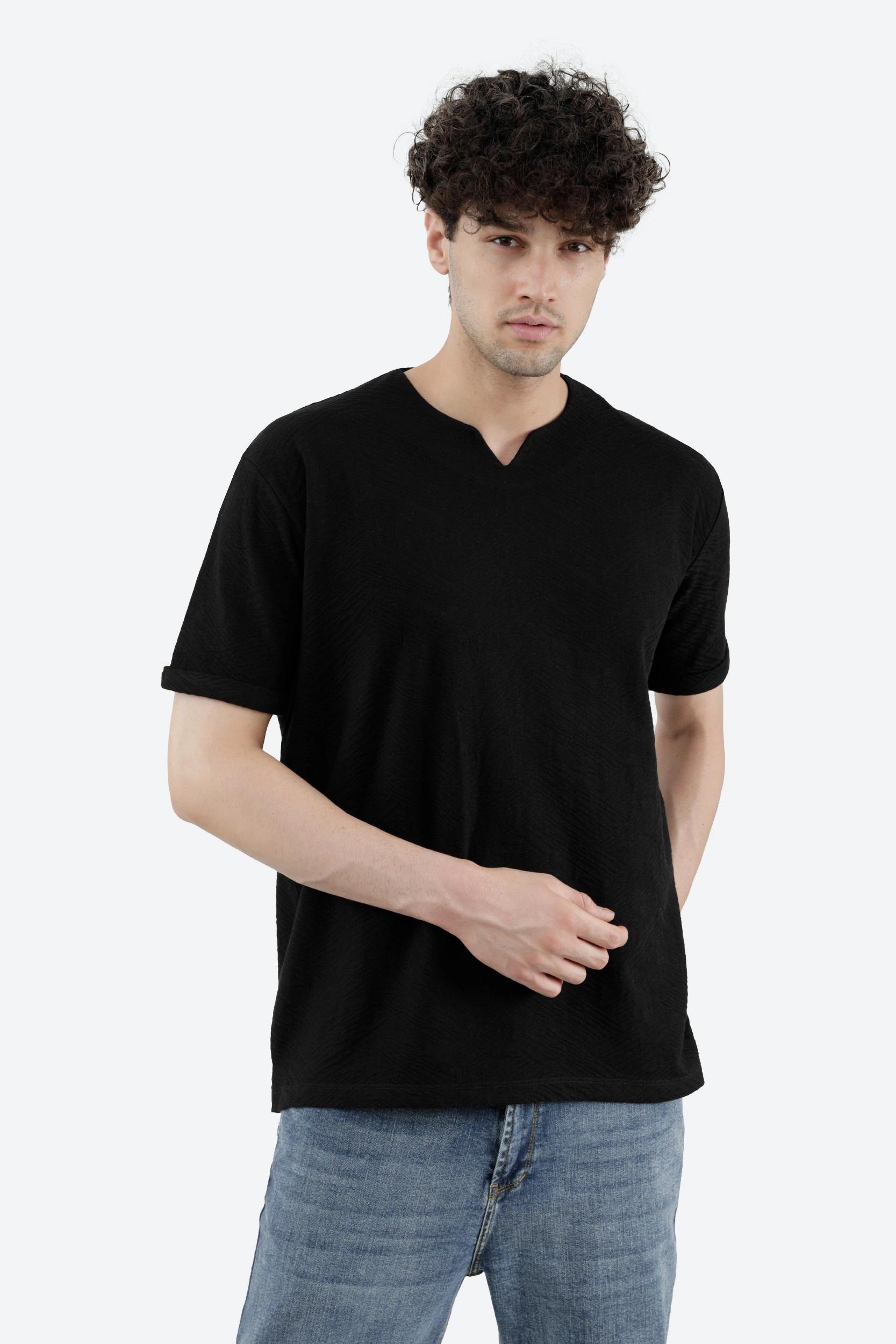 تیشرت آستین کوتاه یقه کوبایی مردانه رنگ مشکی از برند پاتن جامه خرید آسان با ارسال رایگان.