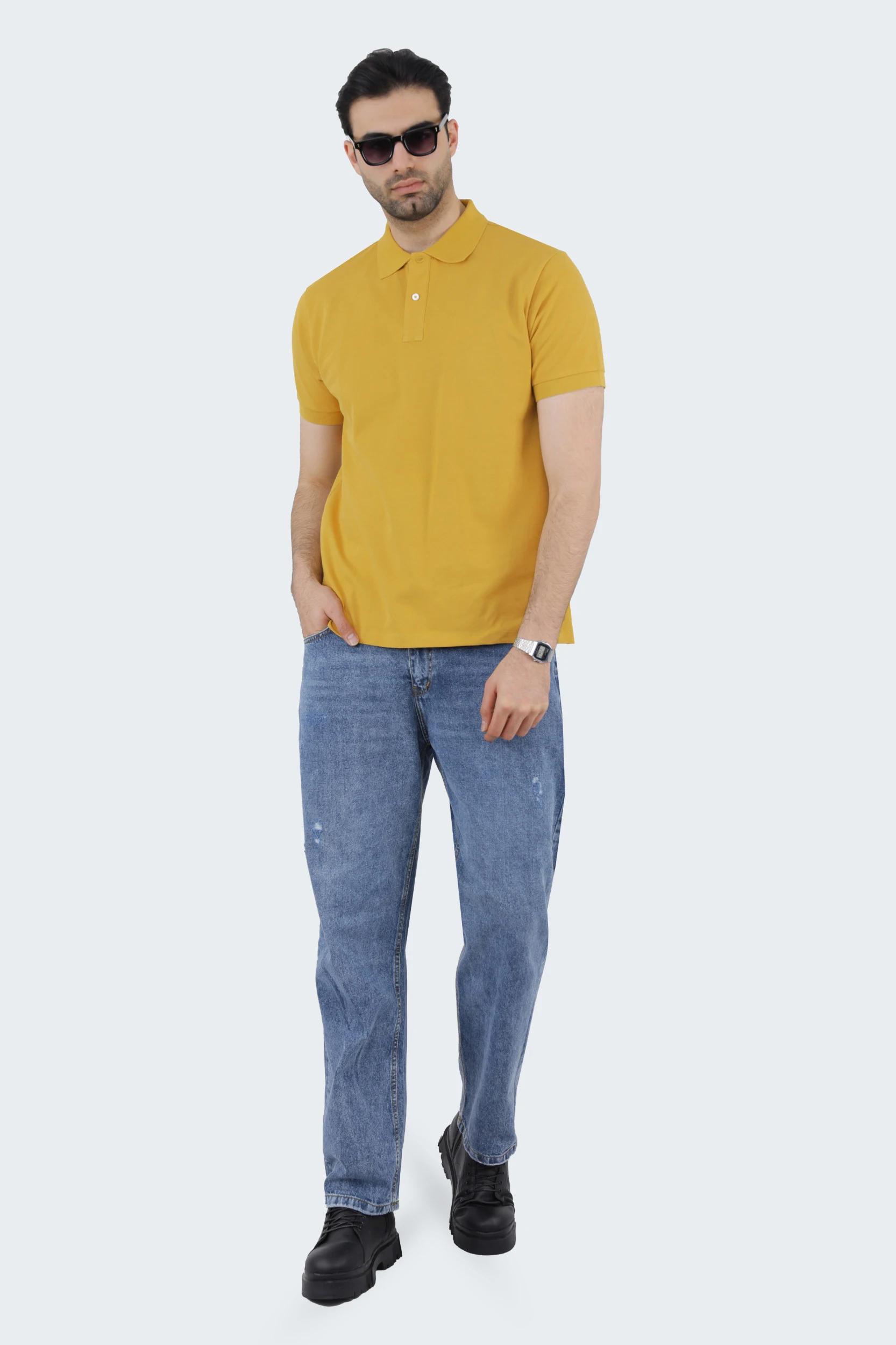 خرید پولوشرت آستین کوتاه مردانه رنگ خردلی یقه برگردان ، ارسال سریع و رایگان.