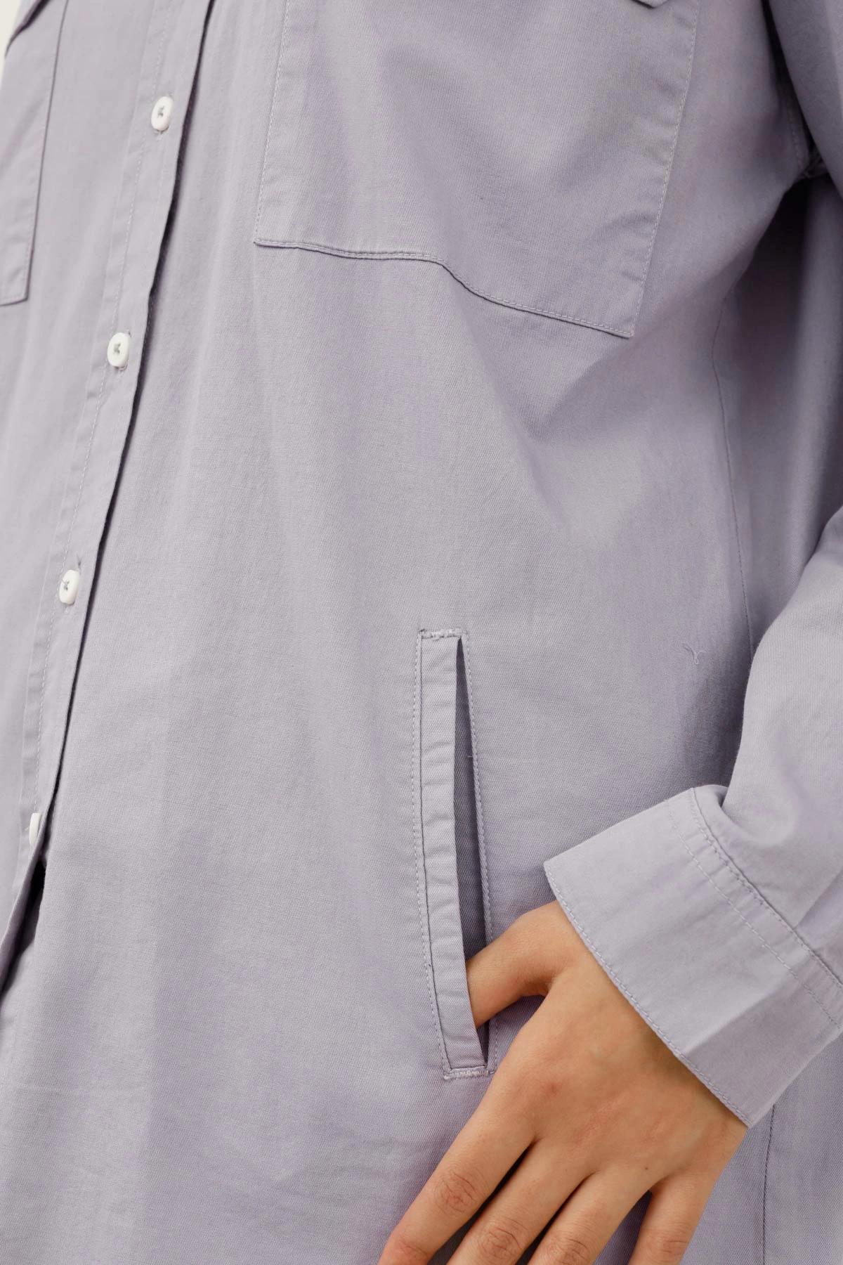 <ul> <li>پیراهن آستین بلند زنانه </li> <li>جنس صد در صد کتان بدون کش</li> <li>پارچه با ضخامت متوسط مناسب فصول گرم ونیمه گرم </li> <li>یقه برگردان </li> <li>دارای دو جیب دکمه دار روی سینه و دو جیب جانبی </li> <li>رنگ طوسی</li> </ul>