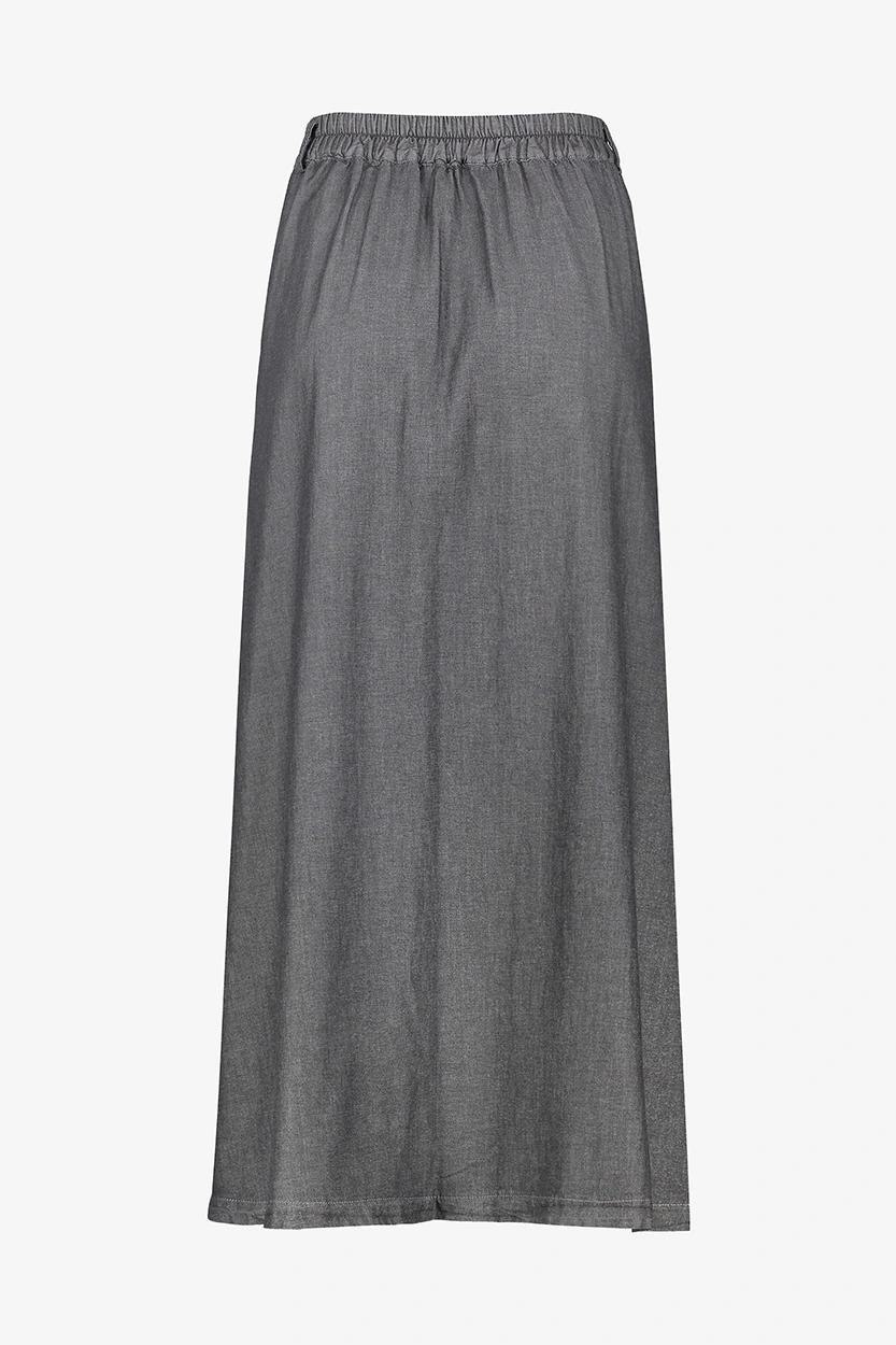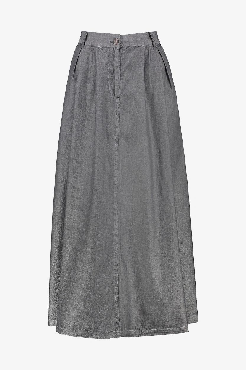 طراحی این دامن زنانه بهگونهای است که میتواند در استایلهای متنوعی استفاده شود. فرم بلند و رنگ زغالی آن، ظاهری مینیمال و در عین حال شیک ایجاد کرده است. وجود دو جیب جانبی هم علاوه بر زیبایی، کارایی دامن را افزایش میدهد.
