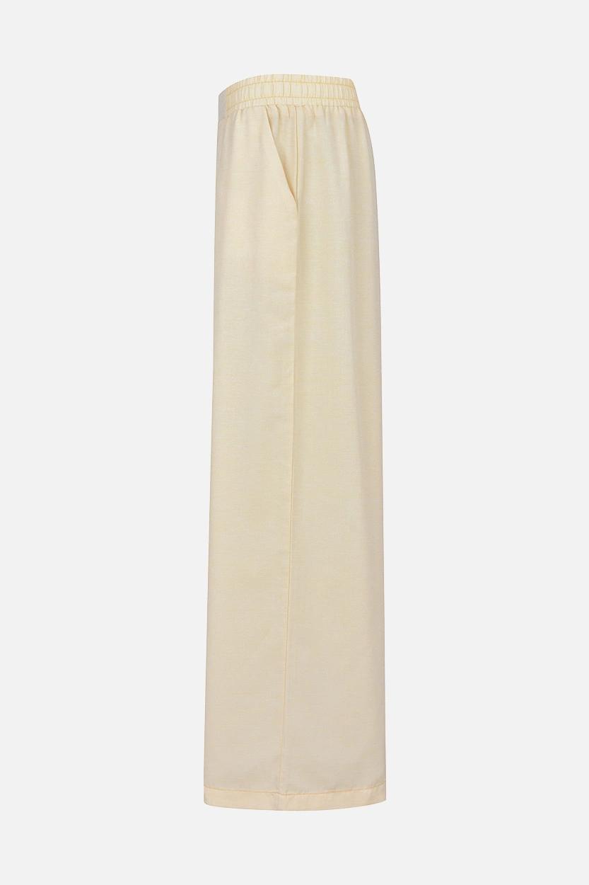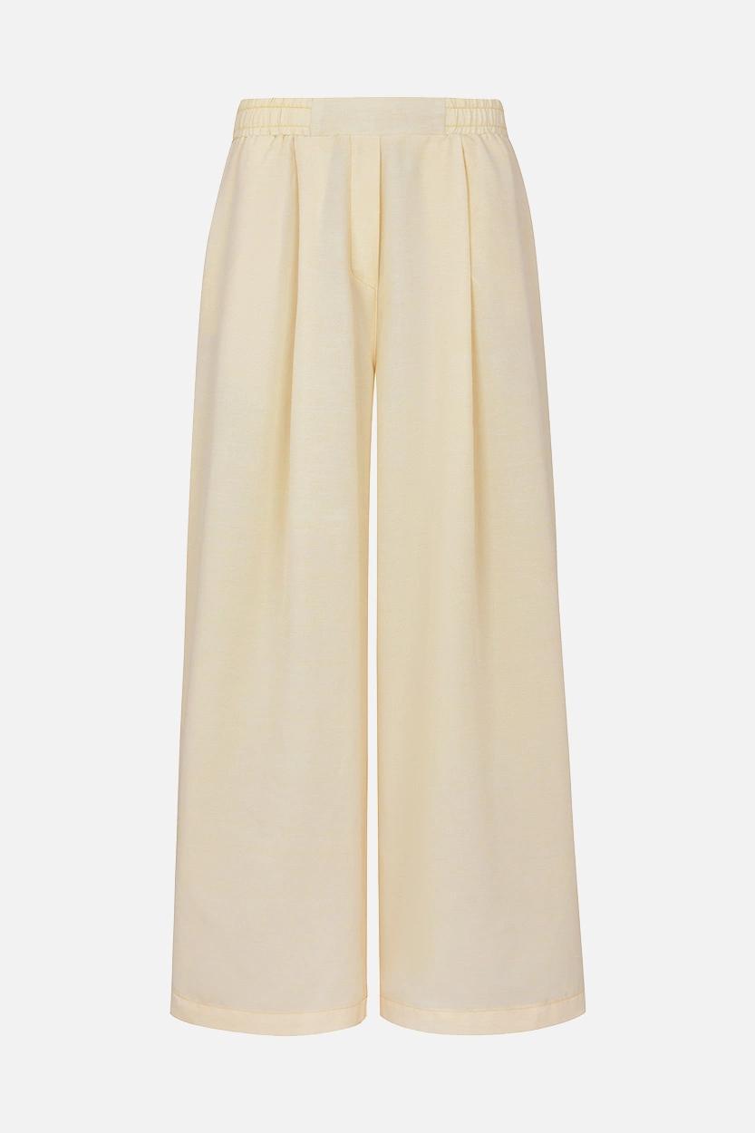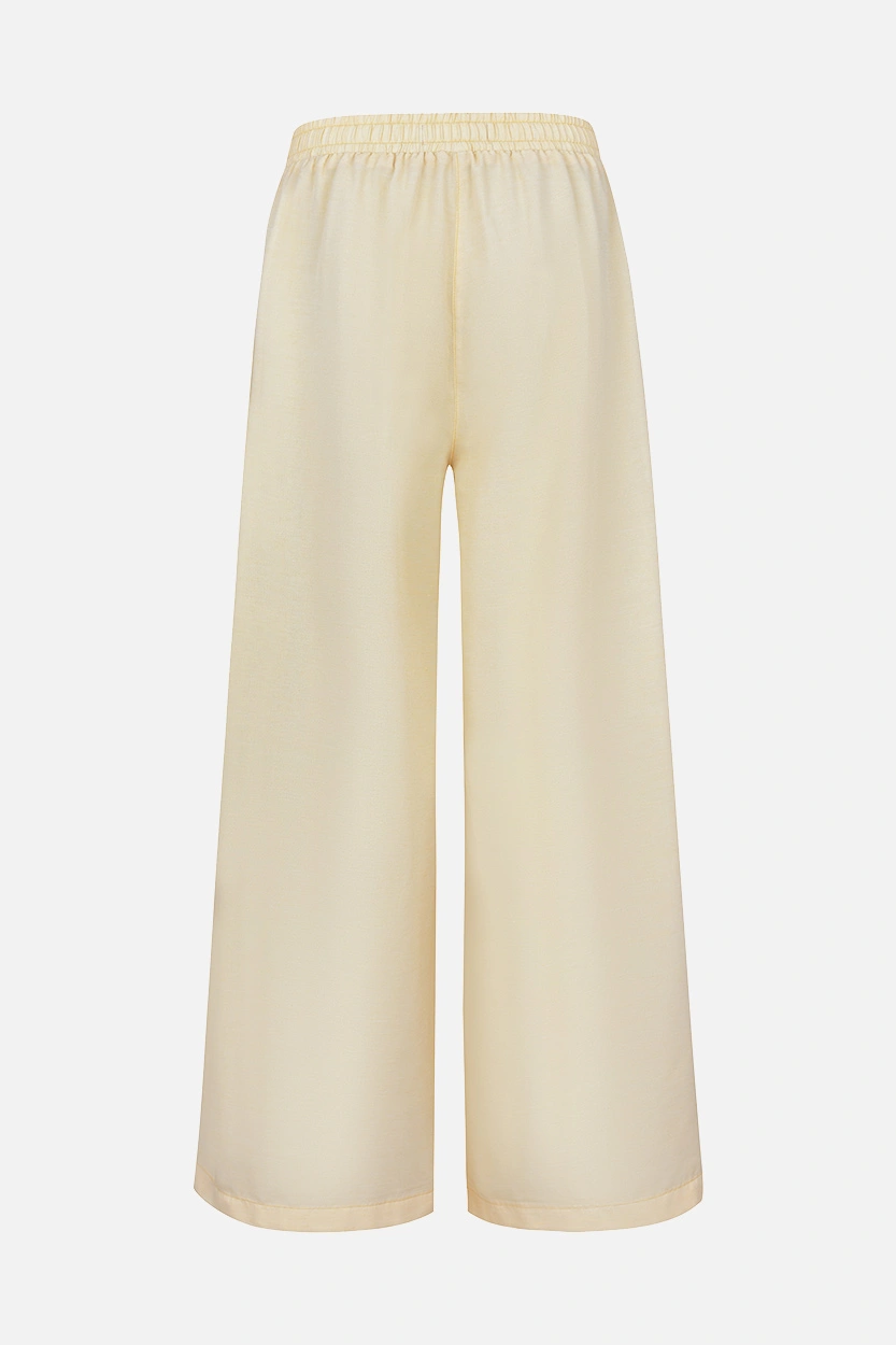 استایل شاداب: دامن شلواری زرد روشن با بلوز کرم یا سبز روشن و کتانی سفید.