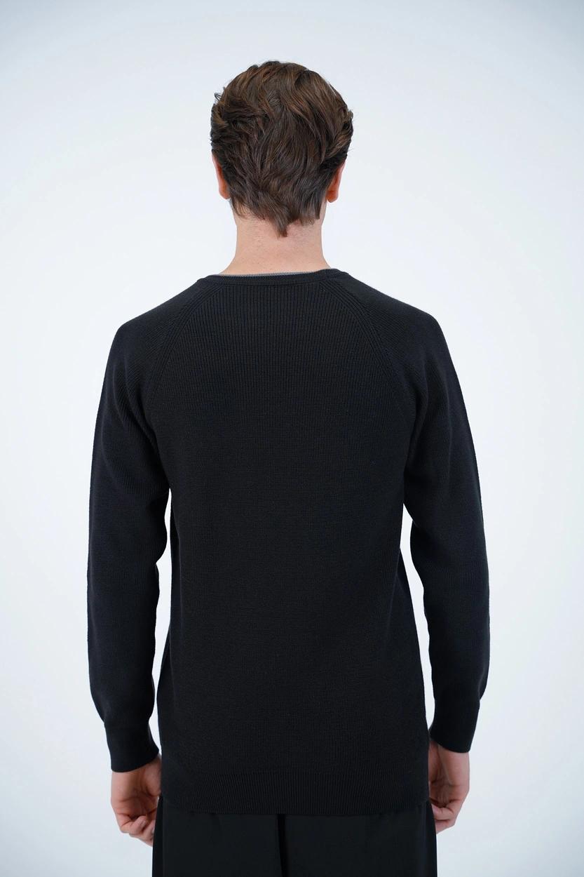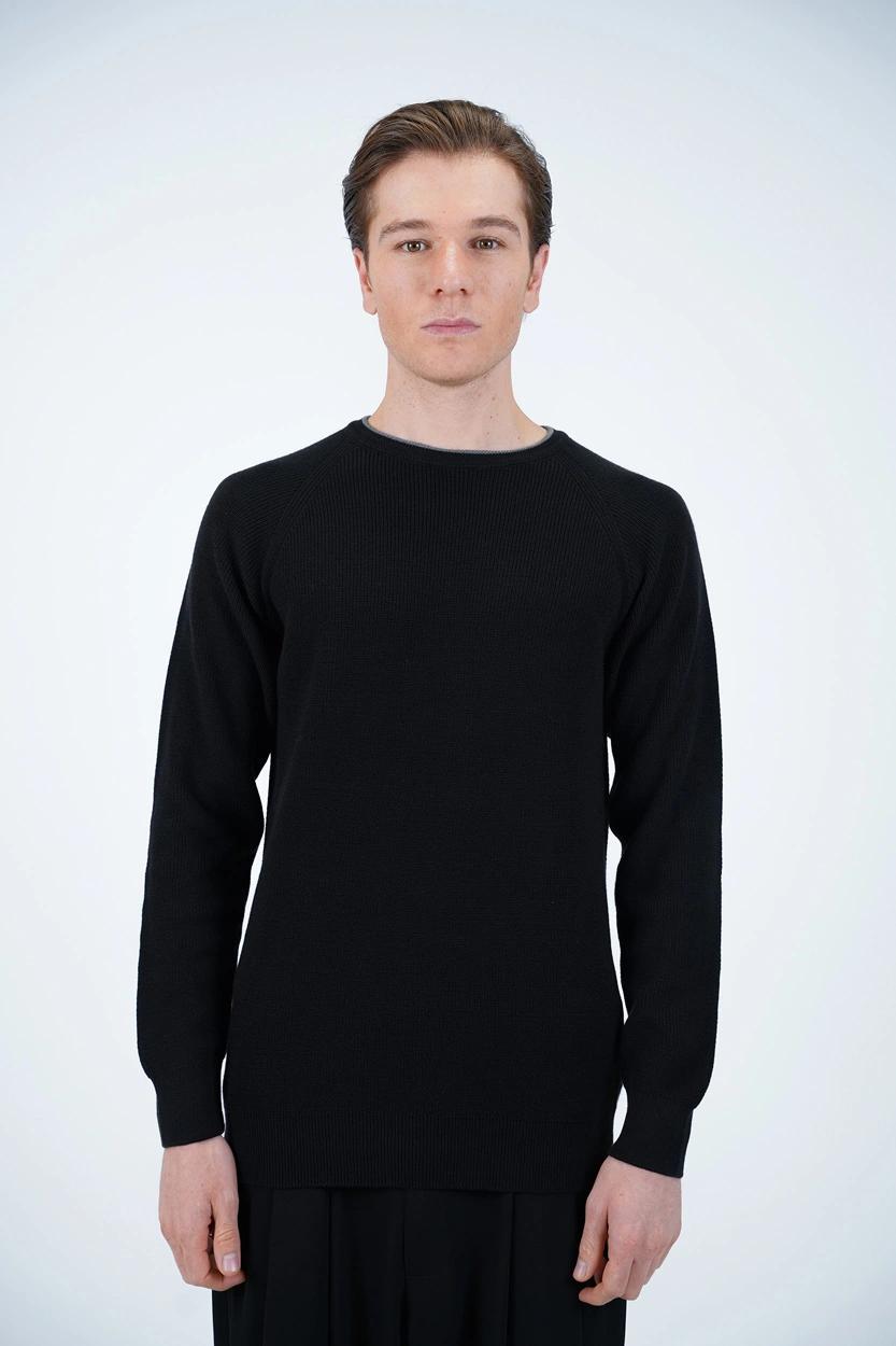 این بافت مردانه با طراحی یقه گرد کلاسیک و آستینهای رگلان (سرخود)، ترکیبی از ظاهر مینیمال و مدرن را ارائه میدهد. آستینهای رگلان علاوه بر ایجاد ظاهری اسپرتتر، راحتی بیشتری در ناحیه شانه و بازو فراهم میکنند. بافت به شکلی دوخته شده که بهخوبی روی بدن مینشیند و برای استفاده طولانیمدت بدون ایجاد حس سنگینی یا خارش مناسب است.