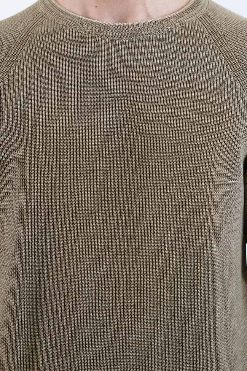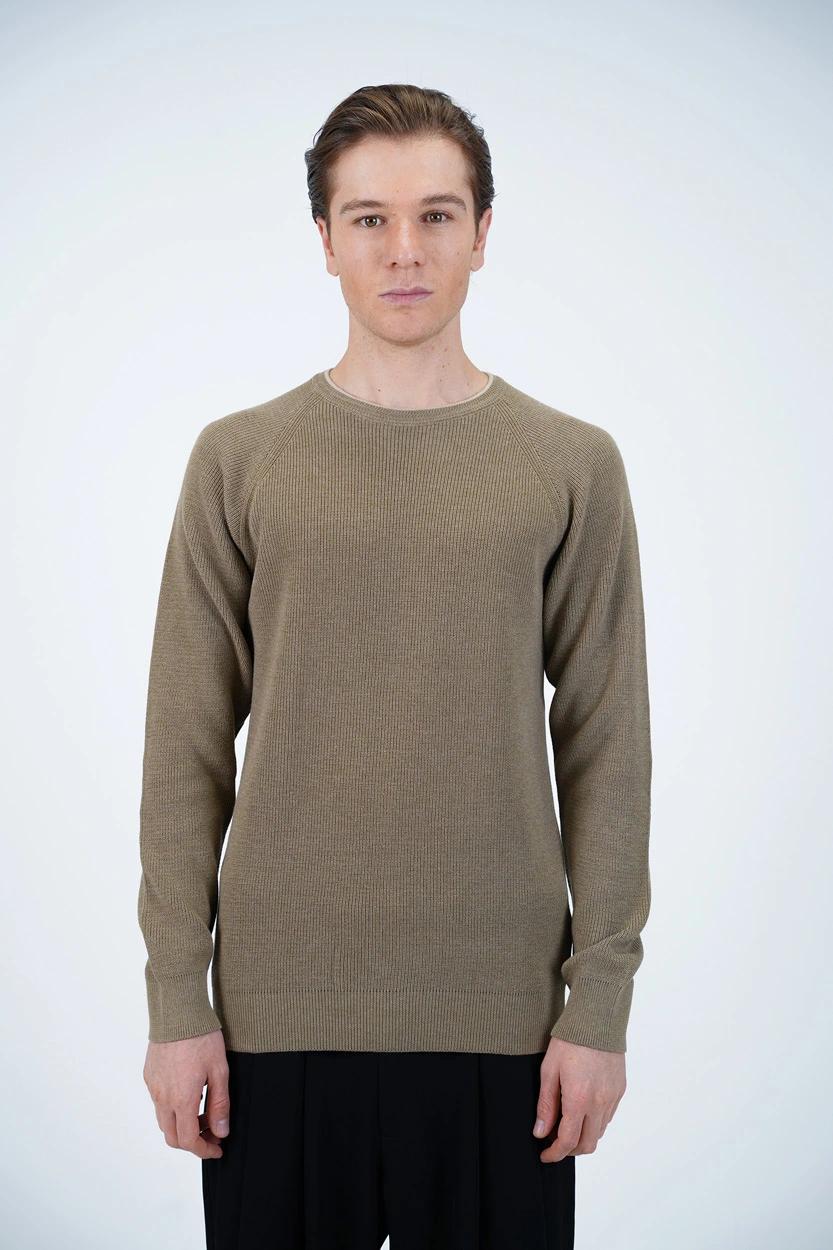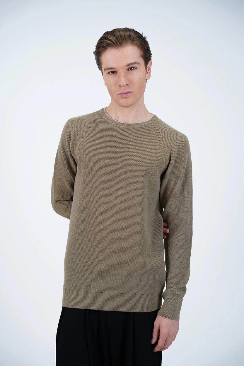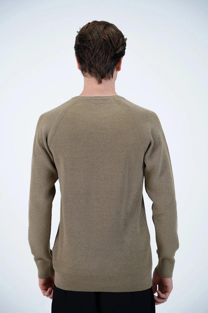 این بافت مردانه با طراحی یقه گرد کلاسیک و آستینهای رگلان (سرخود)، ترکیبی از ظاهر مینیمال و مدرن را ارائه میدهد. آستینهای رگلان علاوه بر ایجاد ظاهری اسپرتتر، راحتی بیشتری در ناحیه شانه و بازو فراهم میکنند. بافت به شکلی دوخته شده که بهخوبی روی بدن مینشیند و برای استفاده طولانیمدت بدون ایجاد حس سنگینی یا خارش مناسب است.